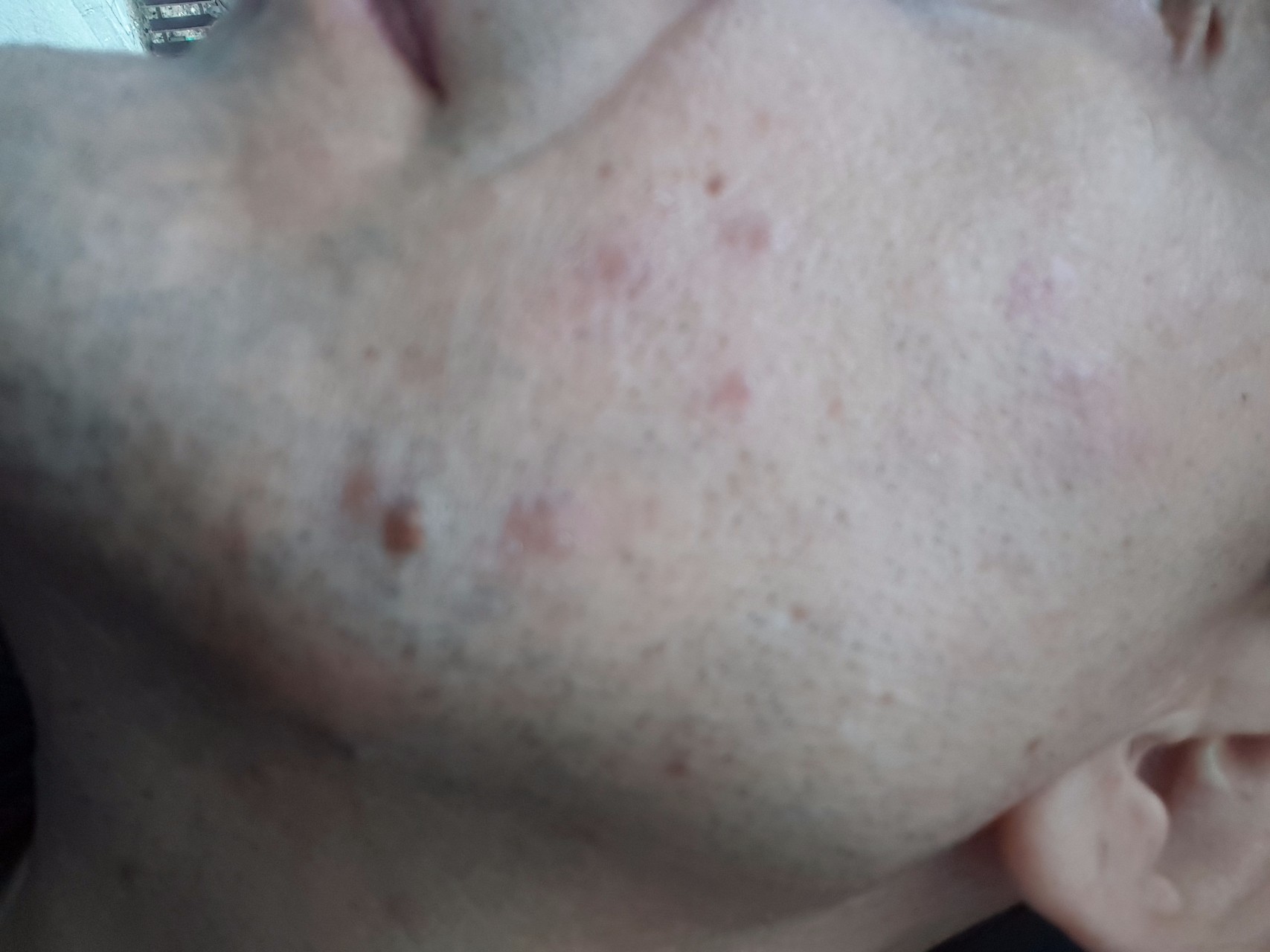 Мес.2 назад появились прыщики а потом все перешло в пятна Были прыщики а потом стало...