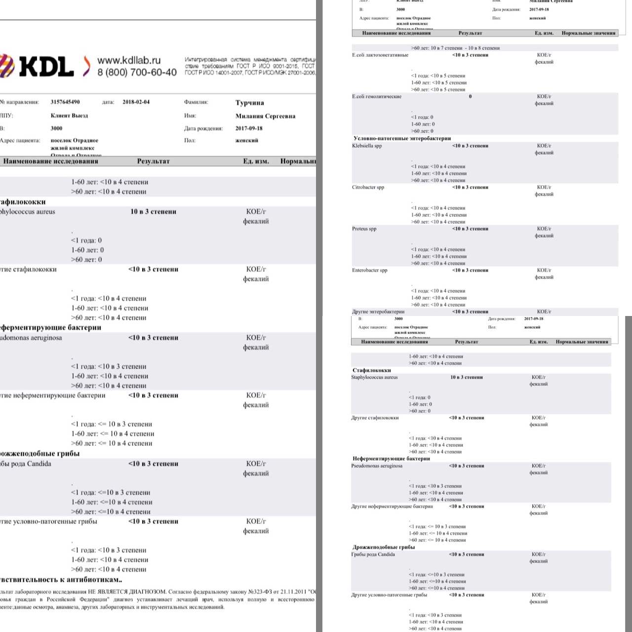 - анализ на Дисбактериоз во вложении