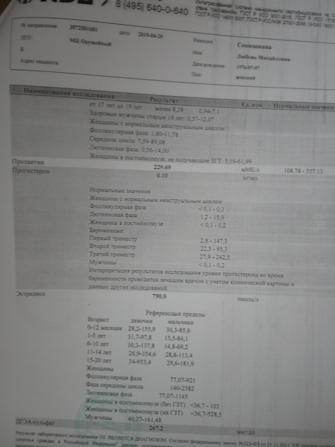 Здравствуйте, уважаемый доктор. В последнее время периодически происходят задержки месячных, причем сами месячные продолжительные, идут по 10 дней. Заметила, что задержки происходят после принятия алкоголя. Приходится пить Дюфастон, чтобы их вызвать. На данный момент задержка почти 2 месяца, молочные железы стали маленькие, худые как бы, на днях сдала анализы на гормоны,5-й день принимаю Дюфастон по 1 т. *2р/д., молочные железы чувствую немного набухали. 1,5года назад вышла замуж, очень хотим ребенка, но забеременеть не получается(у меня 2 полож. Резус фактор, у мужа 2 отрицательный, у него детей нет). У меня от 1-го мужа есть 2 дочери,12 и 7 лет, в анамнезе до рождения девочек 1 выкидыш на сроке 9 недель, после рождения детей 2 аборта, удален левый яичник(из-за кисты), оперативное лечение эрозии ш. м. Пожалуйста, проконсультируйте, подскажите, что а анализах не так, очень хочу забеременеть! ТТГ 1.0908, Т3 1,74; Т4 12,78; ЛГ10,99; ФСГ5,13; Пролактин229,69; Прогестерон 0,10; Эстрадиол 790; ДГЭА-сульфат267,2; Тестостерон общ.1,170; CD4 клетки 1080, ВН ВИЧ отриц. Я заранее благодарю Вас за помощь, пожалуйста помогите! Люба.