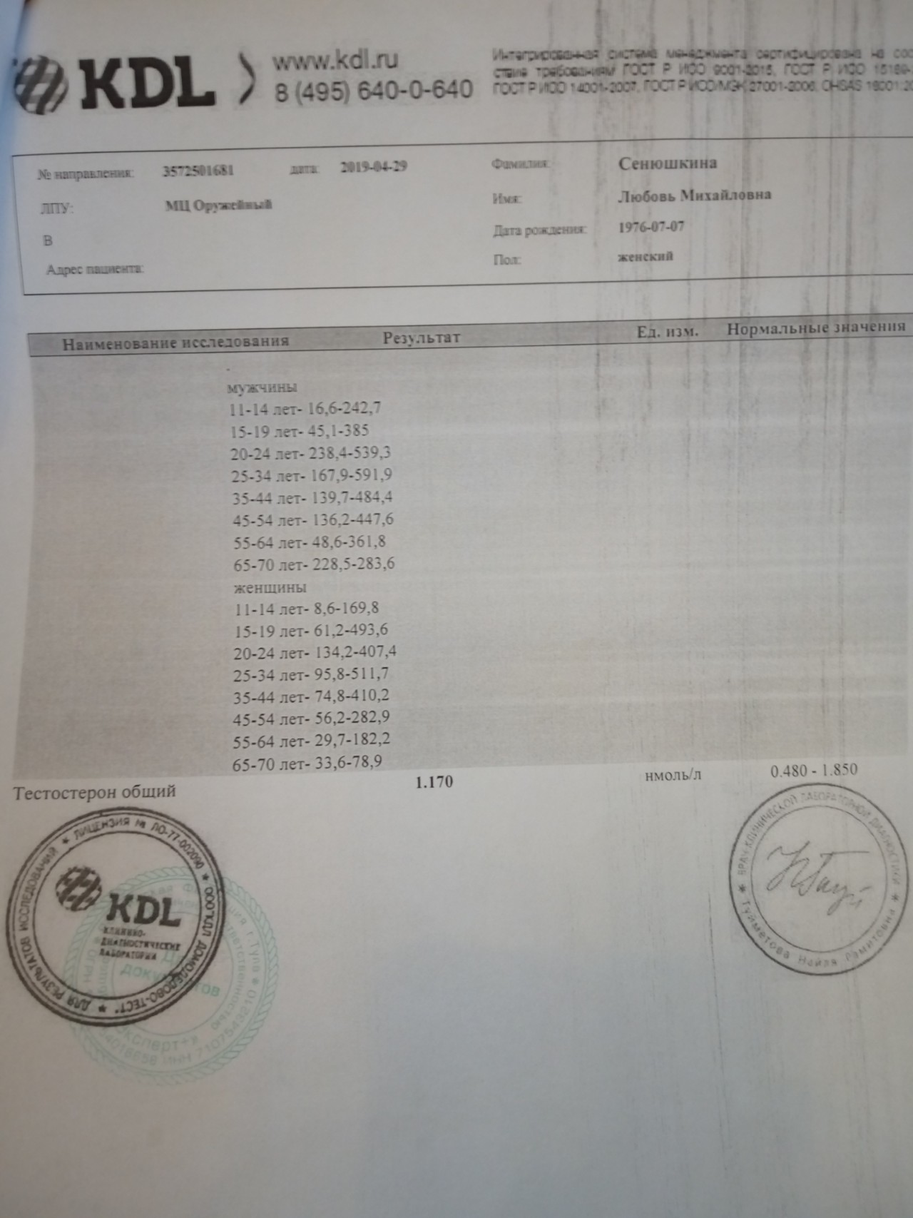 Сенюшкина Любовь Михайловна 2019-05-04 15:30