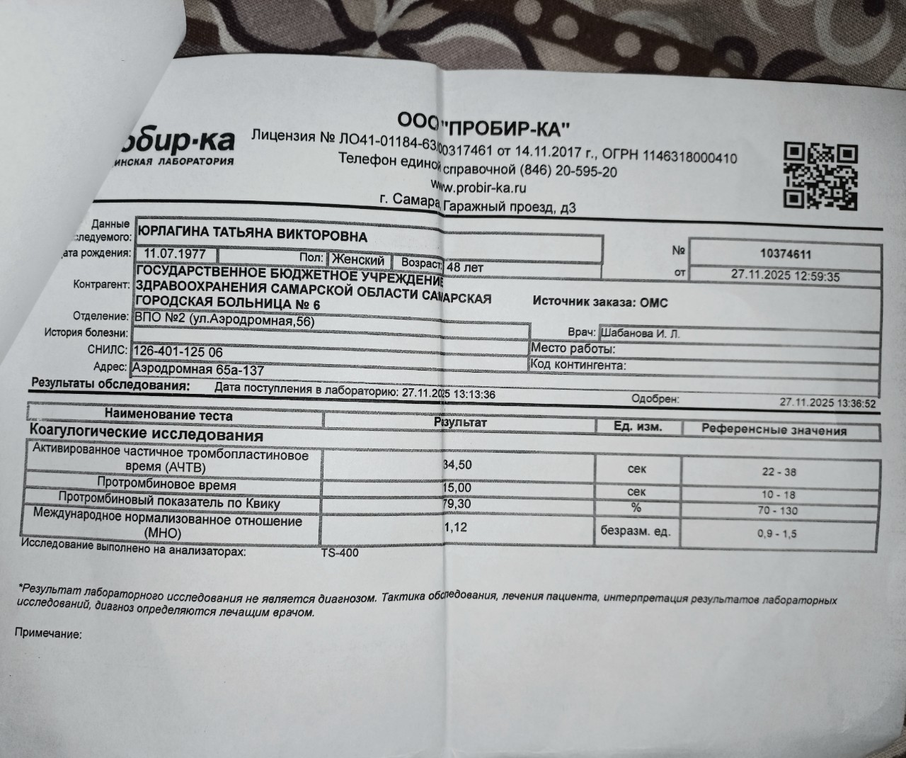 Здравствуйте, доктор. Пожалуйста, могли бы вы сообщить мне результаты моих анализов? Хотелось бы понять, всё ли в норме или есть какие-то проблемы, о которых стоит беспокоиться. Заранее благодарю вас за ответ. Анализы сдавала на тромбы и холестерин
