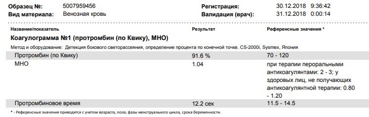 -Коагулограмма №1 (протромбин (по Квику), МНО)