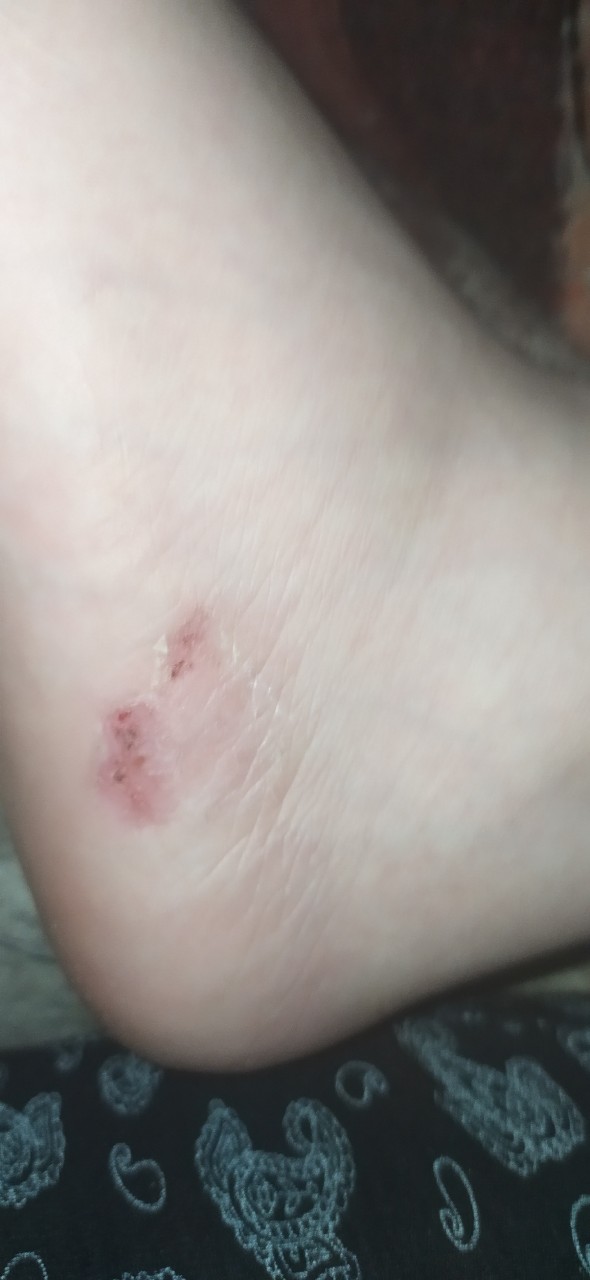 Здравствуйте, у сына заметил на ноге. Что это? Не жаловался, была до этого ранка маленькая, зажила, сказал что ногу расчесал. Такое в первый раз вижу. Не понятно что это и кожа облезла.