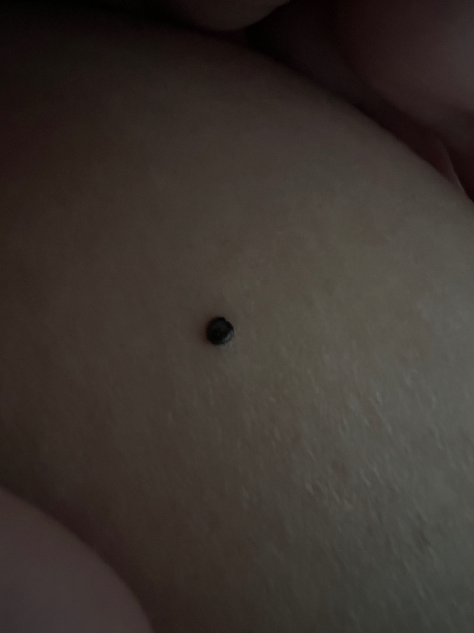 Здравствуйте, три дня назад в области живота, обнаружила черную точку 2,5-3 мм, не беспокоит (похожая на запеченную кровь под кожей) что это? Переживаю очень ????