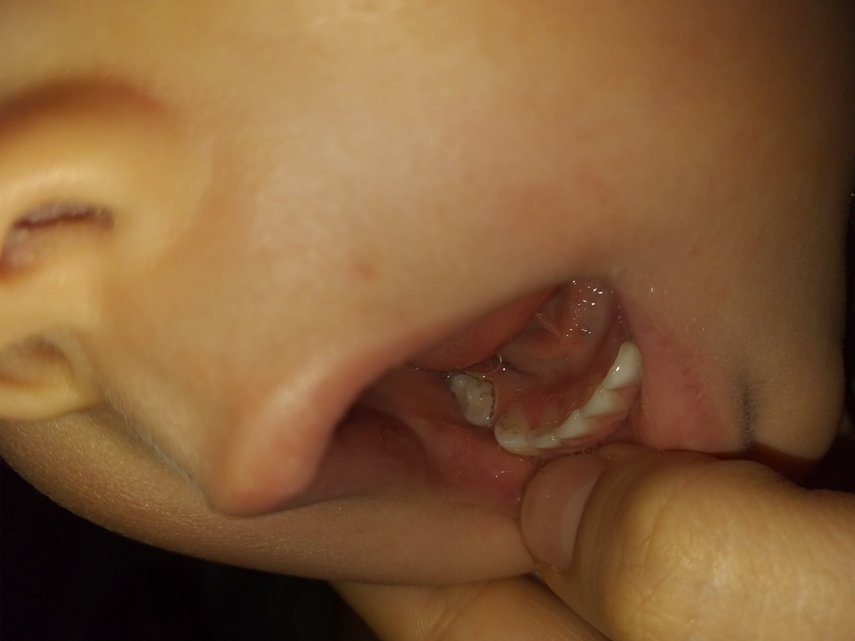 Подозрение на кариес У ребёнка (1 год и 4 мес) образовался темный налёт на зубах (не...