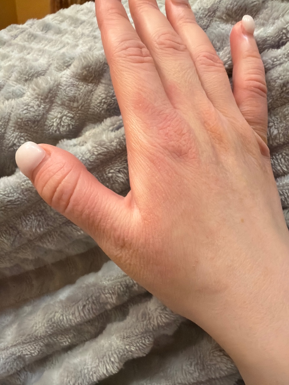 Здравствуйте, появилось замой покраснение на руке при обветривание, сейчас на улице тепло, а это до сих пор осталось, также это наблюдается при контакте с водой