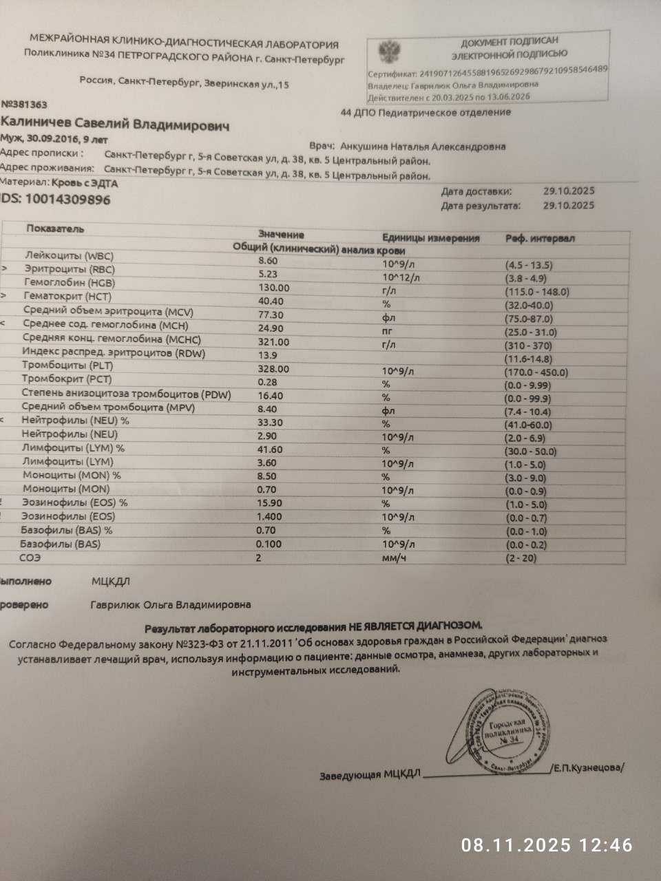 Есть ли признаки лейкоза в общем анализе крови сына. Переживаю за сына. В общем анализе крови есть отклонения от референтных значений. Заранее благодарю за внимание моему вопросу.