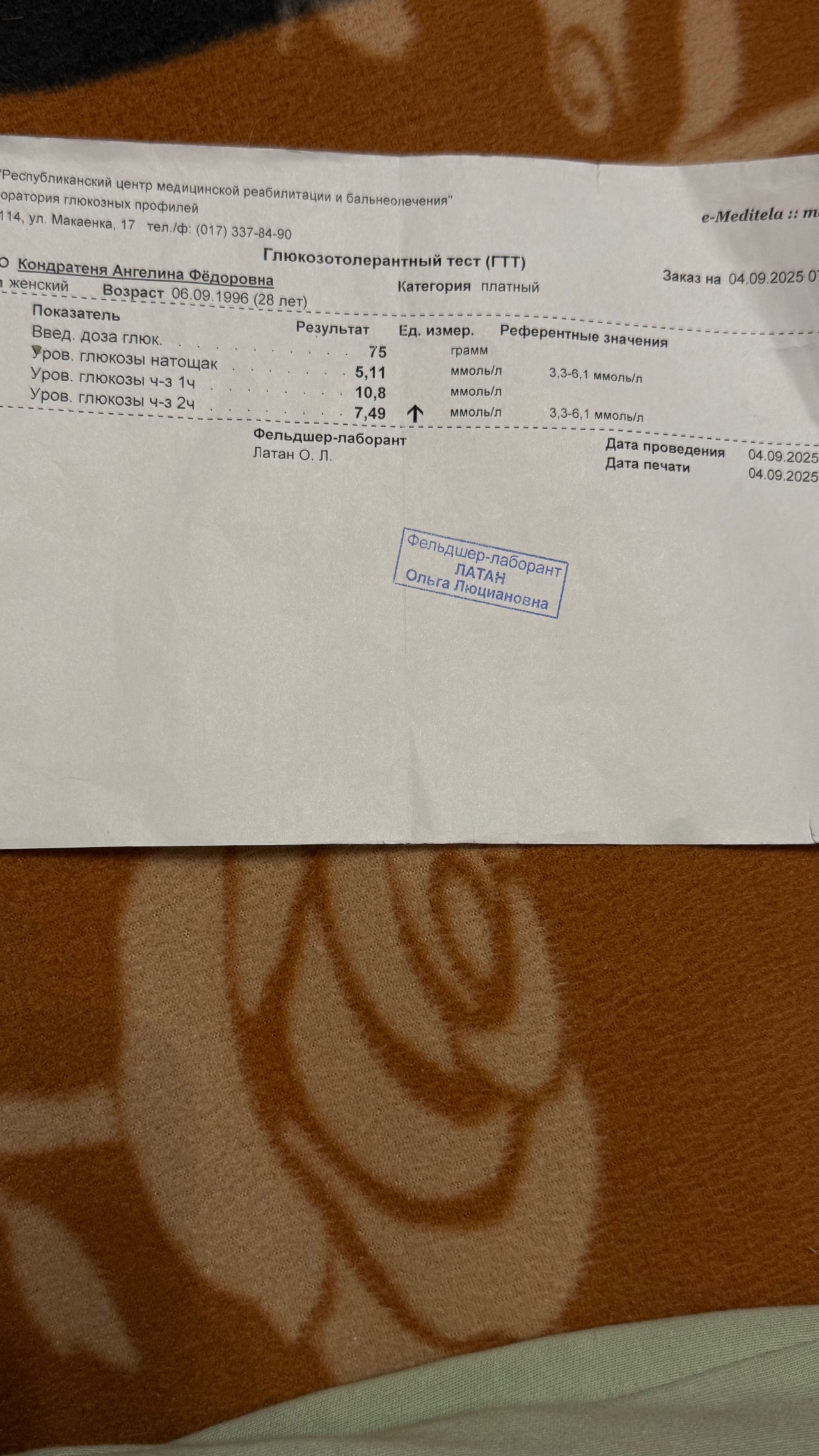 По назначению врача сдавала глюкозотолерантный тест. Уровень глюкозы натощак 5,11 ммоль/л, спустя 2 часа 7,49 ммоль/л.