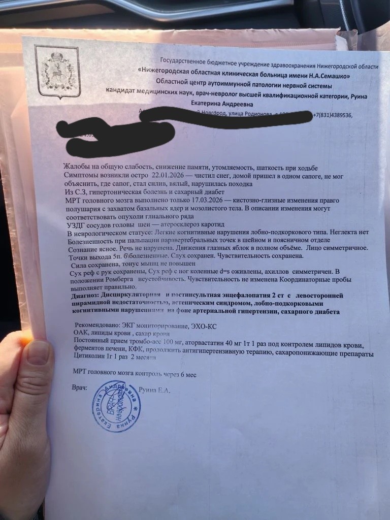 Здравствуйте, папе 75 лет,30 января чистил снег, пришёл в одном сапоге, особого ухудшения самочувствия не заметили, лег, потом встал, все как обычно, бывало повышалось давление до 170, диабет 2 типа. После этого стала развиваться дикая астения, он просто лежал и не мог встать, ничего не болело. Был у невролога, выписали много инъекций, а также мрт. Его прошёл 13 марта, по описанию глиальная опухоль.,сразу же поехали к знакомому нейрохирургу, изучали несколько врачей диск, вывод, что не опухоль, а перенесенный инсульт. Снова консультация невролога, её обследование я вам прикрепляю, но особого лечения то и нет. Стали сами колоть глиатилин и пить цитиколин. Вопрос, что ещё можно поделать? Жалоб то особых нет у папы, слабость только, от давления и диабета пьёт. Можно ли восстановиться? Спасибо