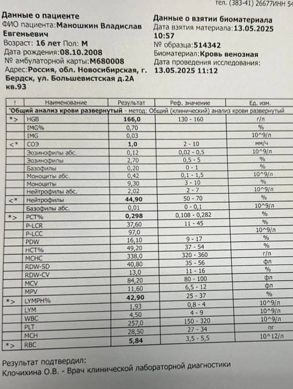 Анализ крови с превышением нормы Сыну 18-ти лет сделали общий анализ крови. Выглядят...