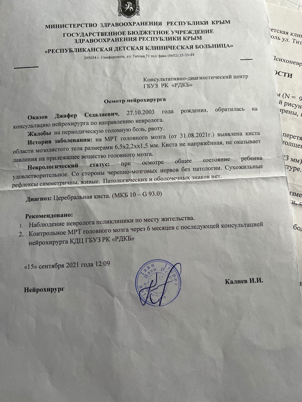 Вітаю, когда я сделал МРТ в первый раз 31.08.2021 года когда мне сделали МРТ там обнаружили кисту (киста мозолистого тела) , потом в 2023 году сделал повторное МРТ и там обнаружили еще одну в мозжечке и больше чем первая. Угрожают ли эти кисты моей жизни. Несут ли угрозу. Как появилась первая. Что делать? Все МРТ обследования вам предоставляю виде файлов.