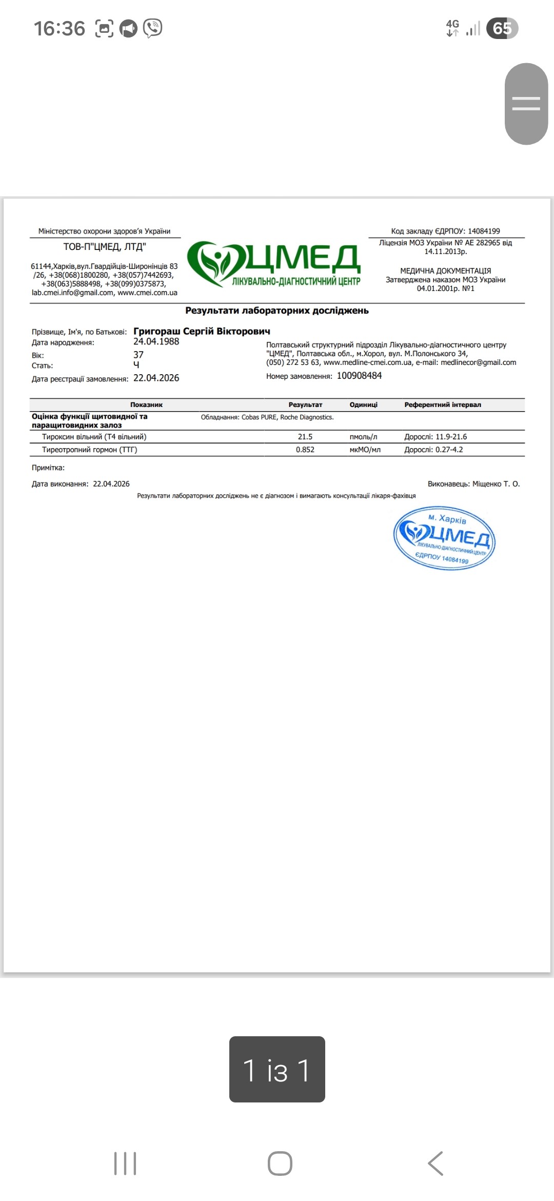 Смешаный Зоб 1 ст Здала анализы Тиреотропний гормон
