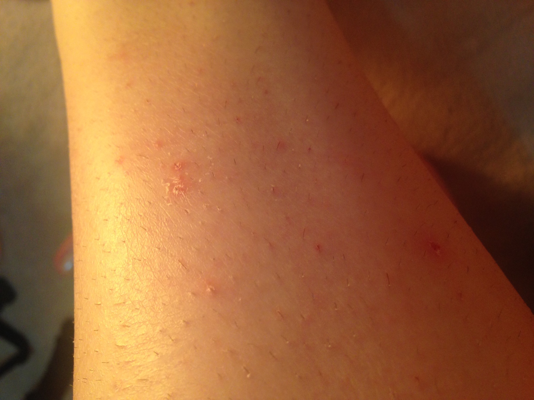 Пупырышки на руках и красная подкожная сыпь на ногах Красная сыпь- немного красных...