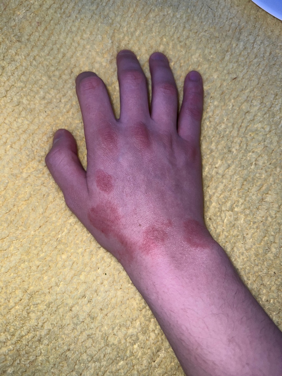 Красные пятна на руке, экзематозный дерматит фото Подскажите, пожалуйста, по фото,...