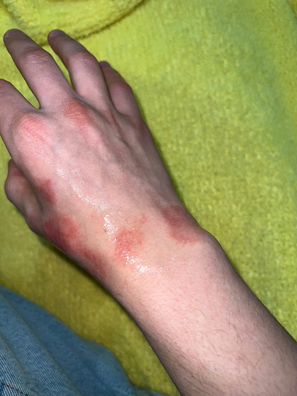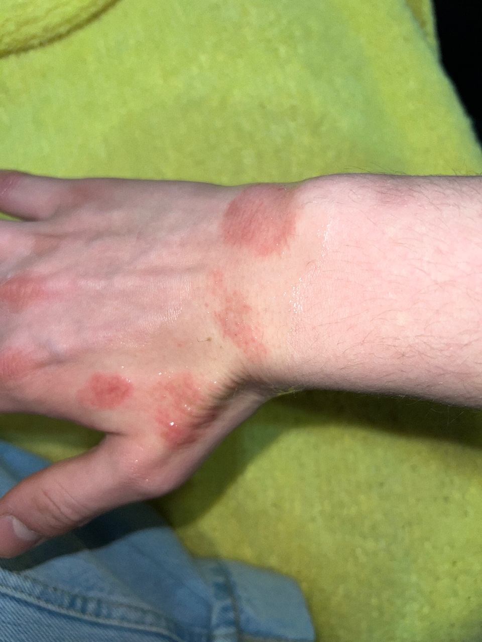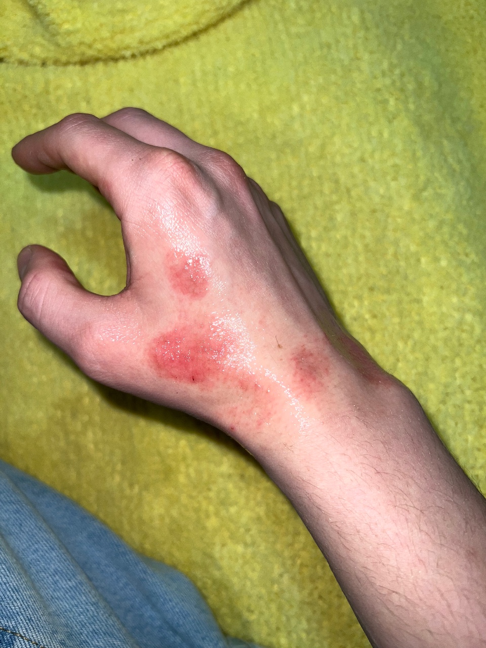 Сейчас важно минимизировать контакт с водой и мылом, внутрь - антигистаминные, на высыпания - крем мометазон дважды в день. Дополнительно увлажняйте бепантеном в течении дня.