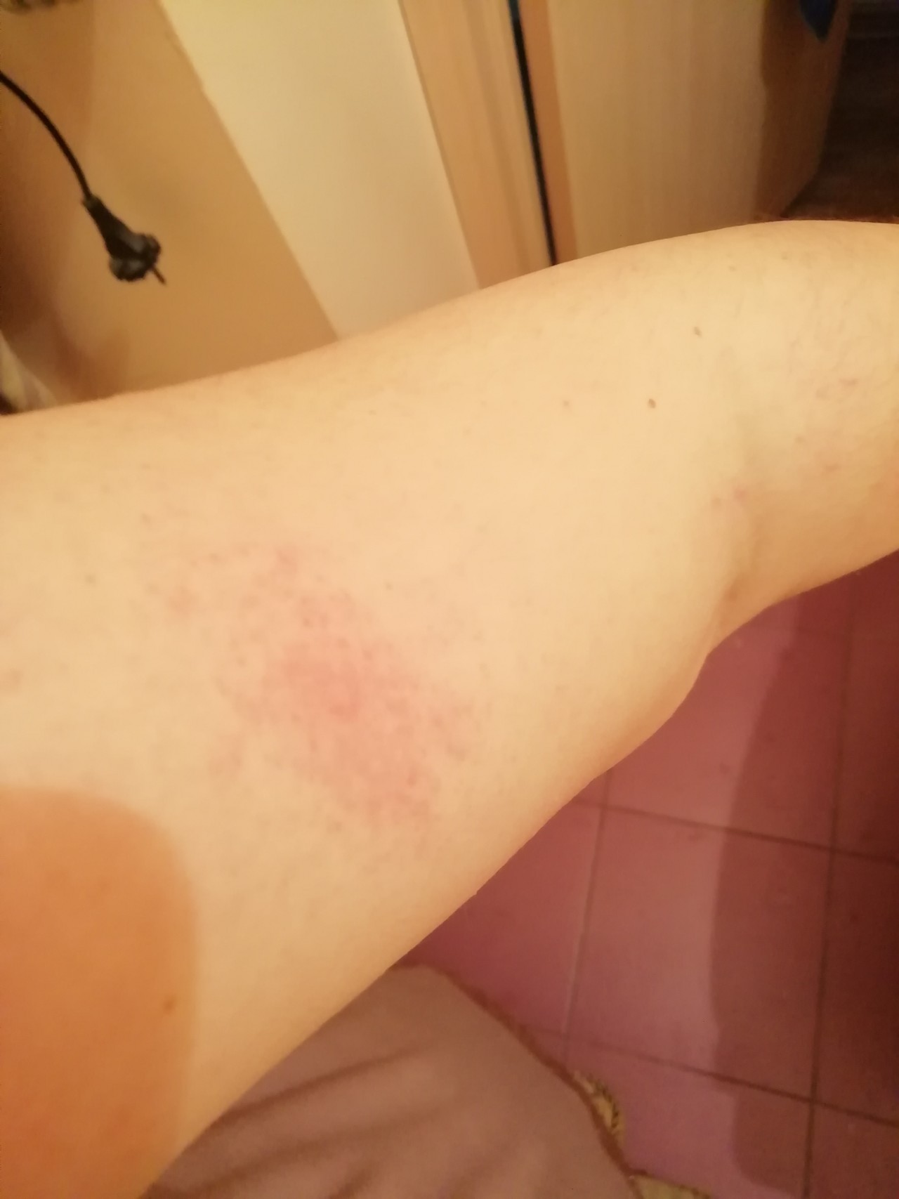 Заболевание кожи Недели 3 назад появились красные пятна на голени, потом через неделю...