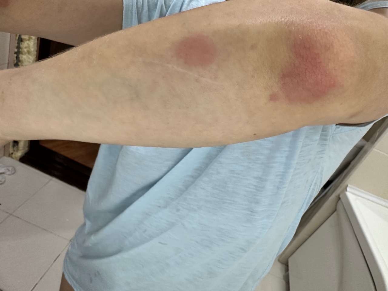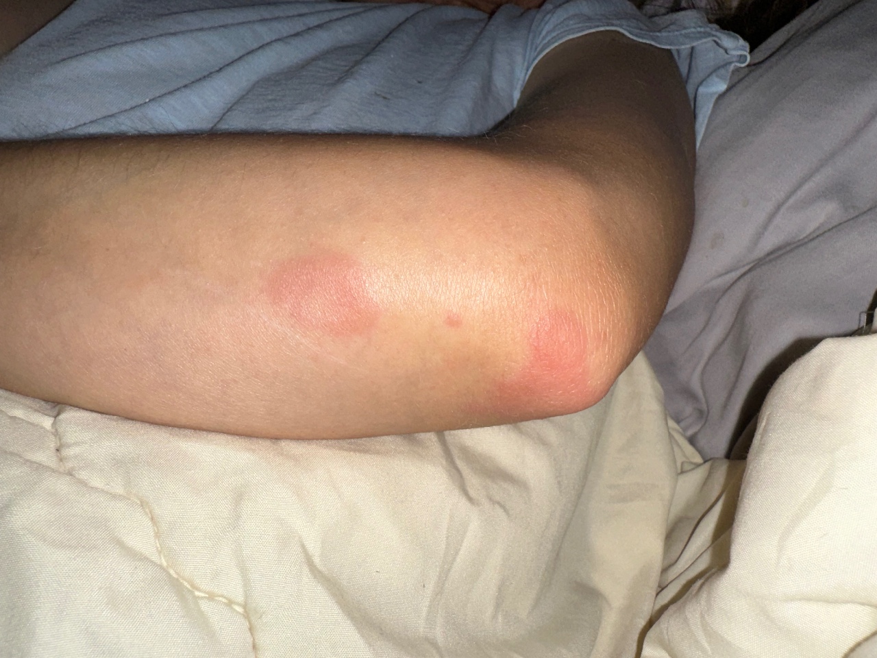 Красные пятна на руке, ляшке и попе Подскажите пожалуйста, стала замечать утром, после...