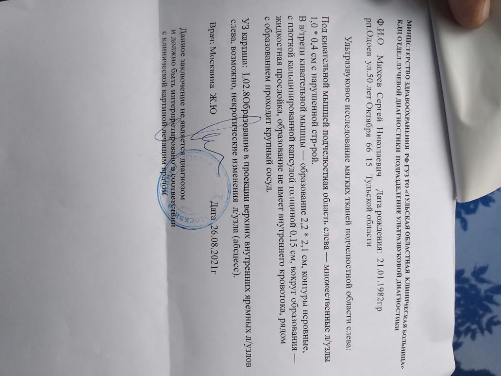 Лимфоузел с левой стороны на шее Наталья Геннадьевна. Где то в конце августа, чисто...