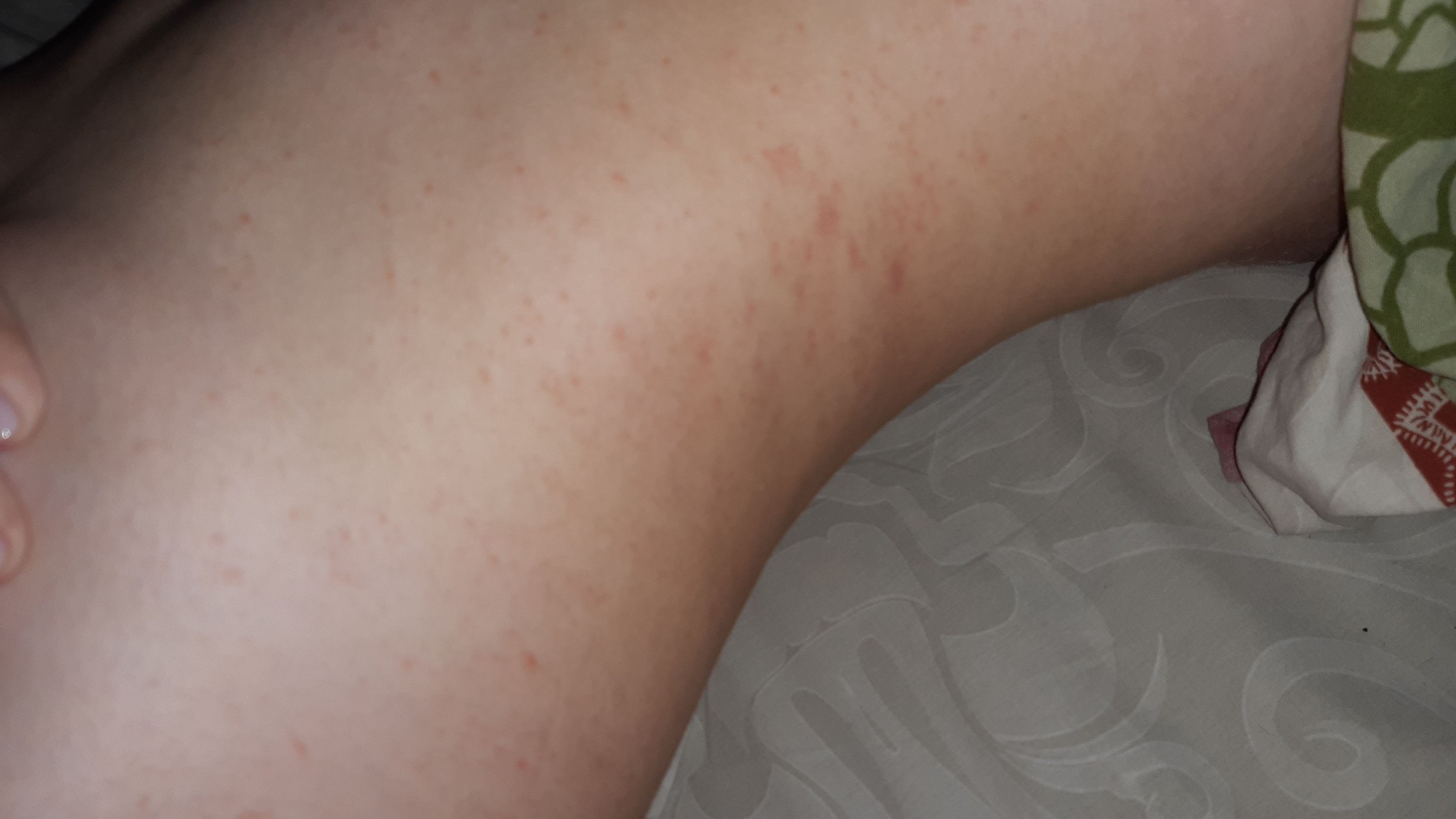 Мелкая сыпь по телу Утром заметила сыпь на плече и на бедре очень чесались, а вечером...
