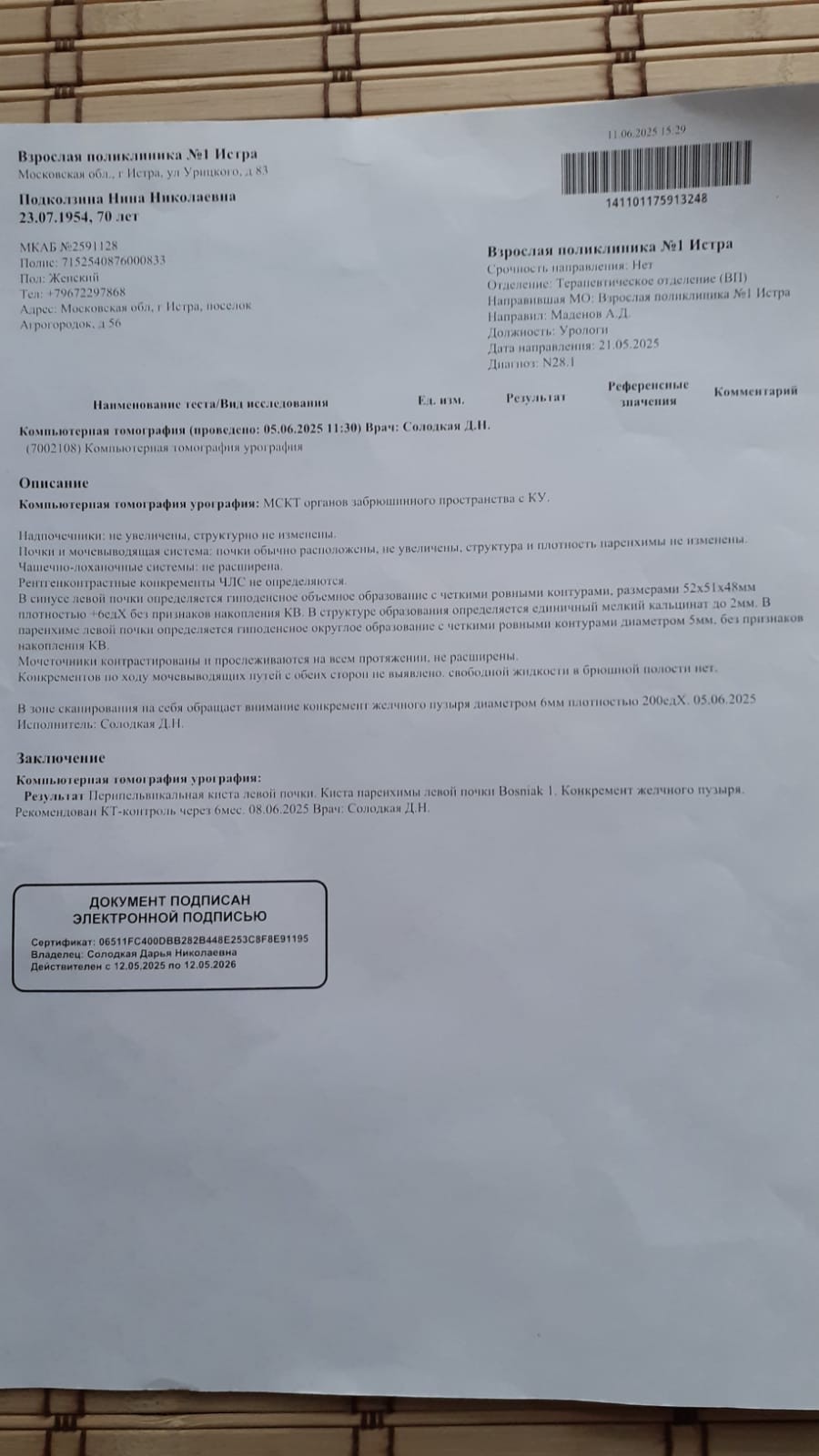 Здравствуйте, нужна Ваша консультация. Подскажите, пожалуйста, Во вложении заключение, обязательна ли операция в моем возрасте или можно наблюдать? Насколько это опасно? Очень жду Ваш ответ, заранее спасибо!