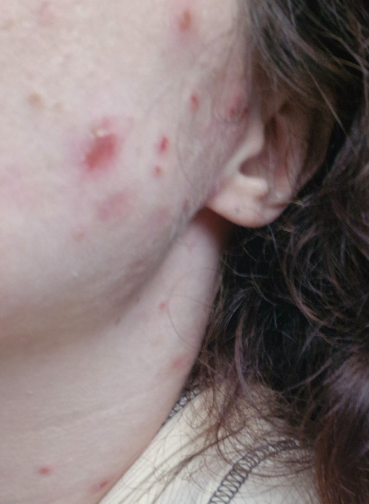Красные мокнущие пятна на лице и теле Обратилась к дерматологу по поводу зуда на лице,...