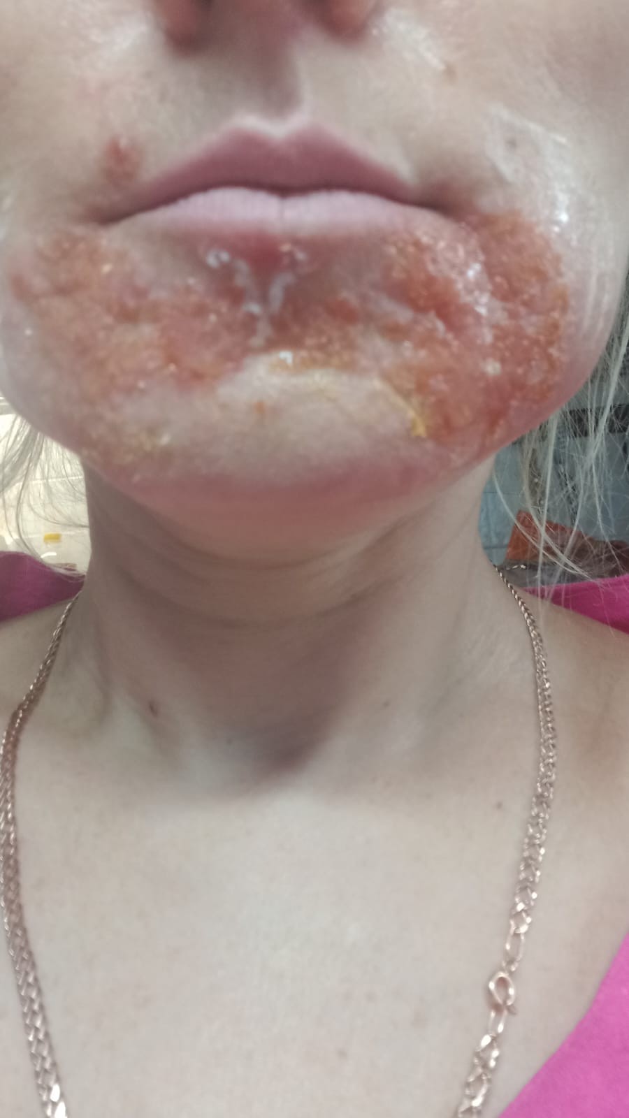 Здравствуйте, У меня мокнущие высыпания на подбородке, которые переросли в сплошную эрозию. Сильно зудят и присутствует отек. Сам высыпания очень мелкие и зудящие, внутри жидкость. К дерматологу записалась, но уже не могу ждать. Ночами не сплю, все чешется. Левомеколь, синтомицин, ацикловир, эритромицин, метрогил, цинокап, фенивейт - это все что я перебробовала, толку нет. У меня подозрения на стрептодермию, но не понимаю как лечить.