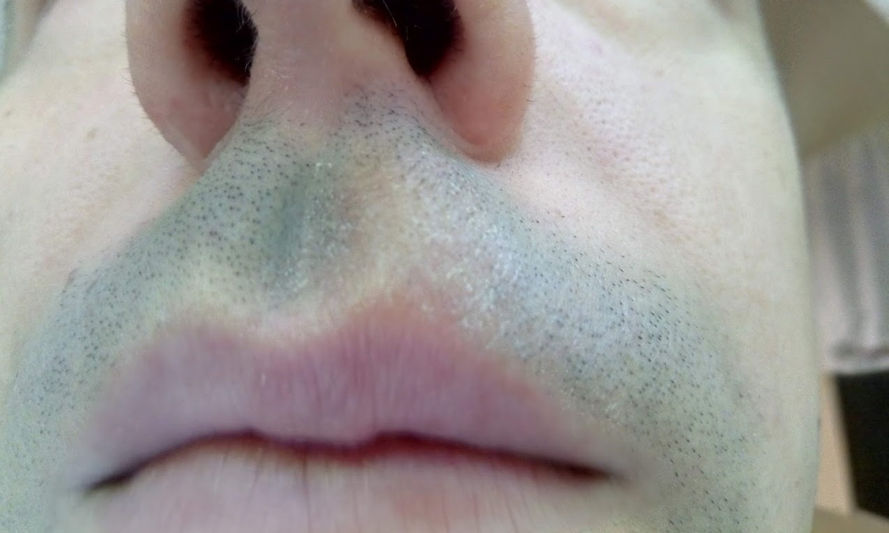 Розовое пятно над верхней губой жжет и чешится Меня зовут Евгений у меня на лице начались...