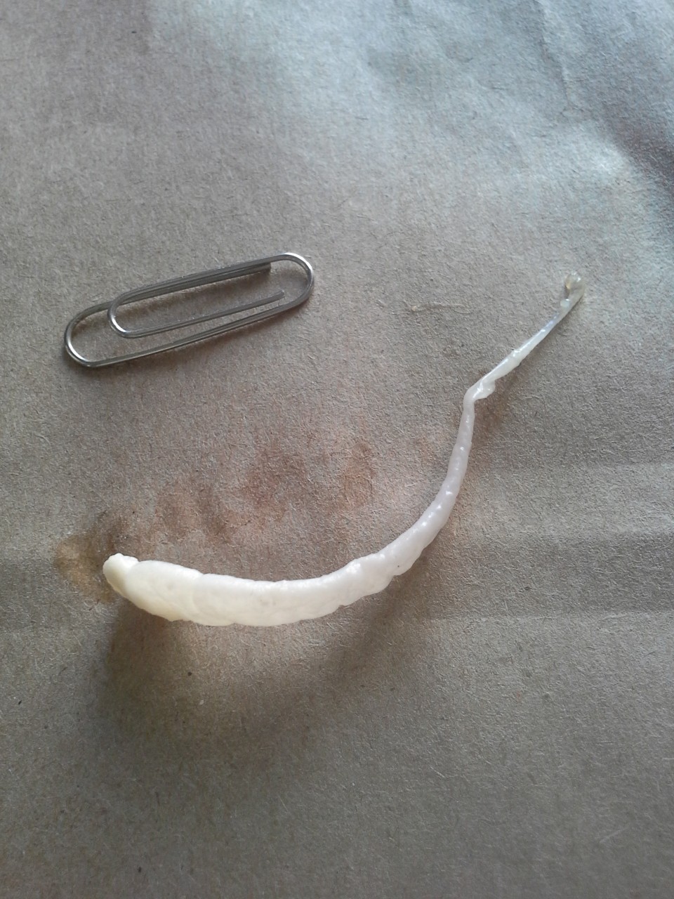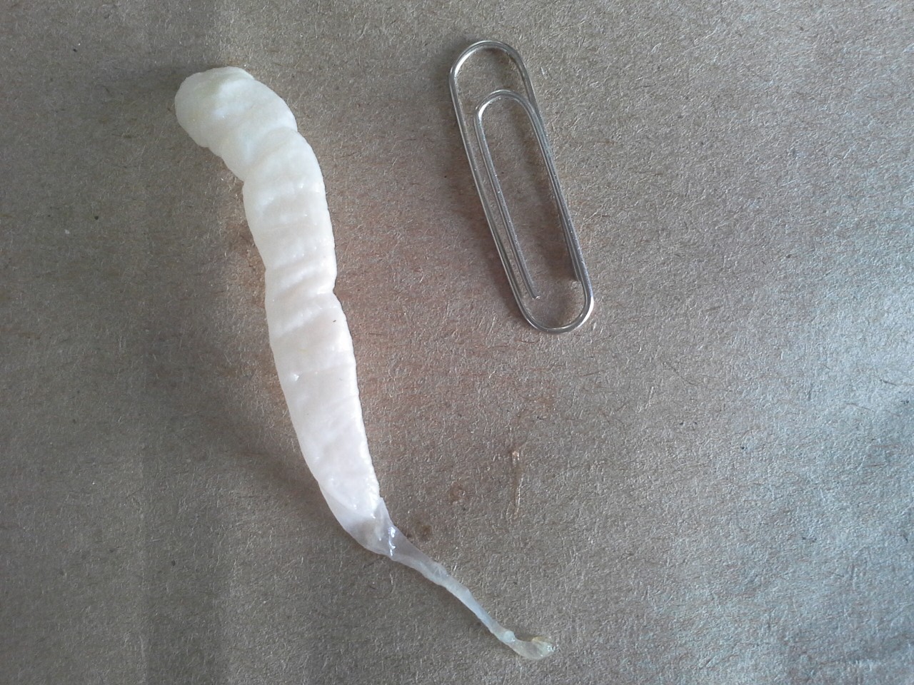 У меня необычный вопрос. Замешивая тесто на сырники, обнаружила в миске неизвестный объект (фото прикрепляю). Он был либо в пачке с творогом, либо внутри яйца; хотя в последнем случае не представляю, как я могла не заметить его в таком маленьком объеме, но поутру всякое бывает. По консистенции похож на полоску плотной резины или кожи, поверхность исчерчена (как поверхность кожи). Что это может быть? Опасаемся паразитов.
