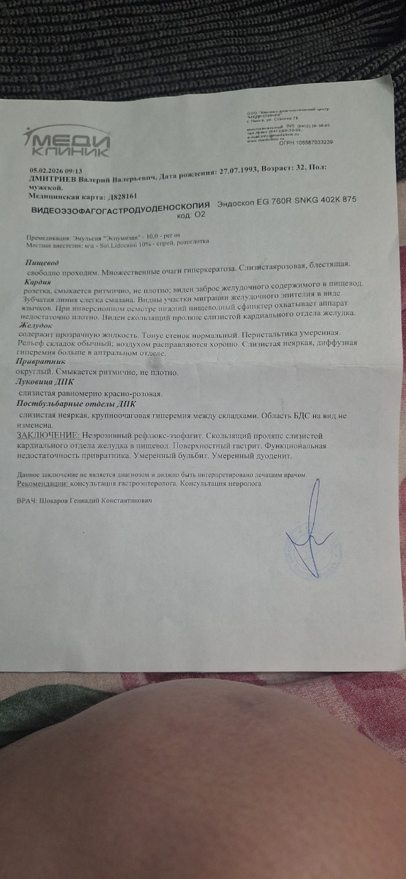 Фото результата Фгдс Прозодила фгдс желудка так как меня беспокоит все время слизь...