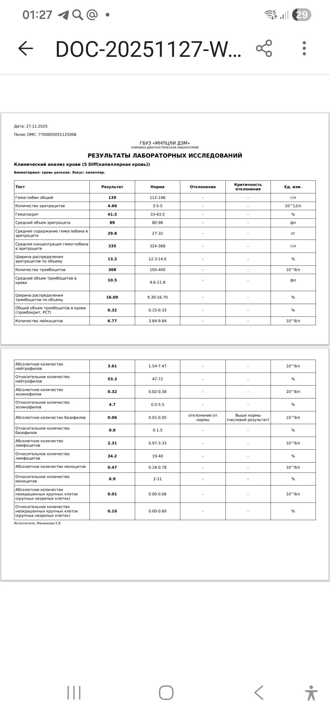 Лекоцитепения Прокомментируйте пожалуйста мои анализы.