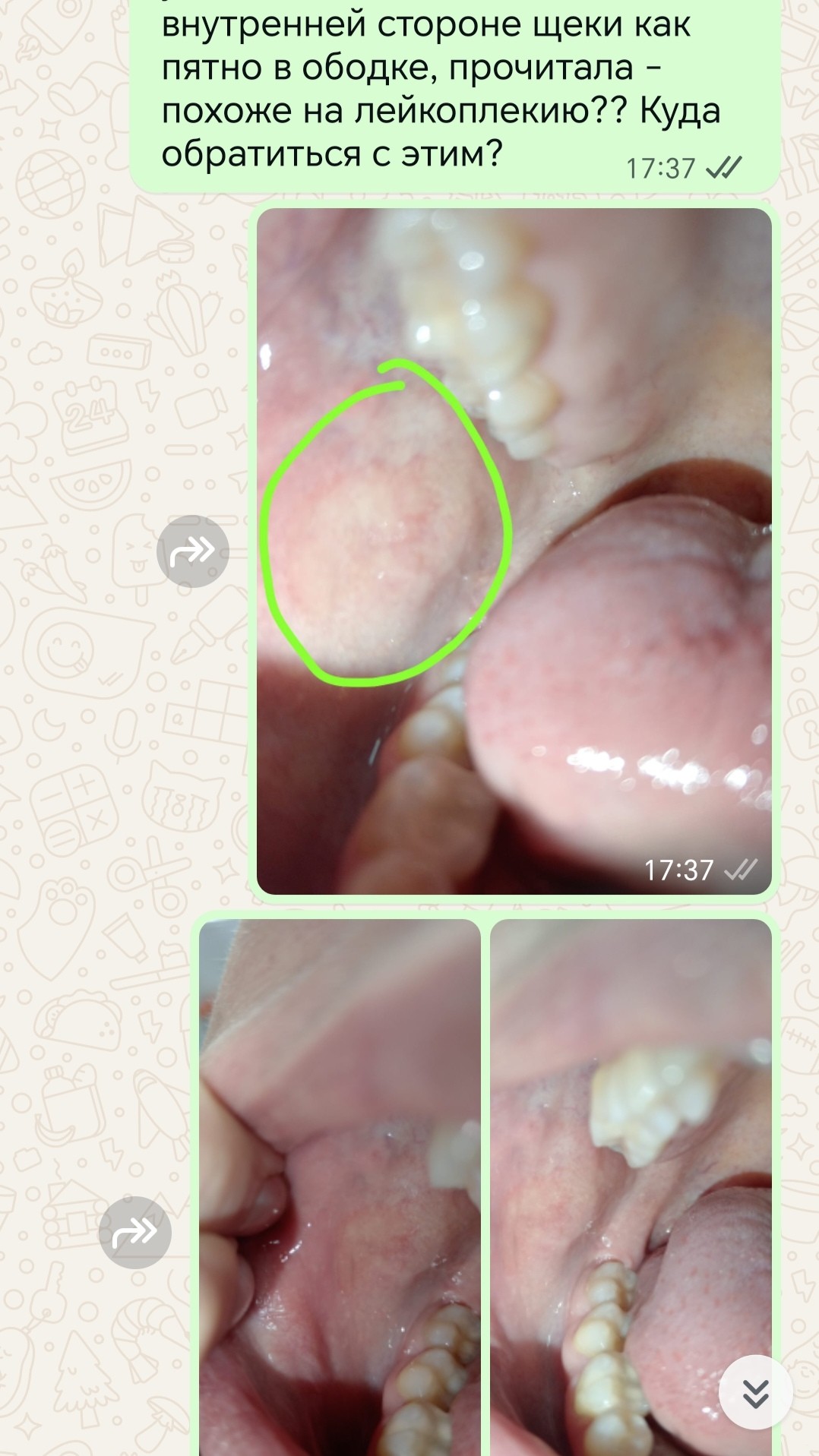 Сомненительное пятно на внутренней стороне щеки Уже писала сюда. Жалуюсь ещё раз....