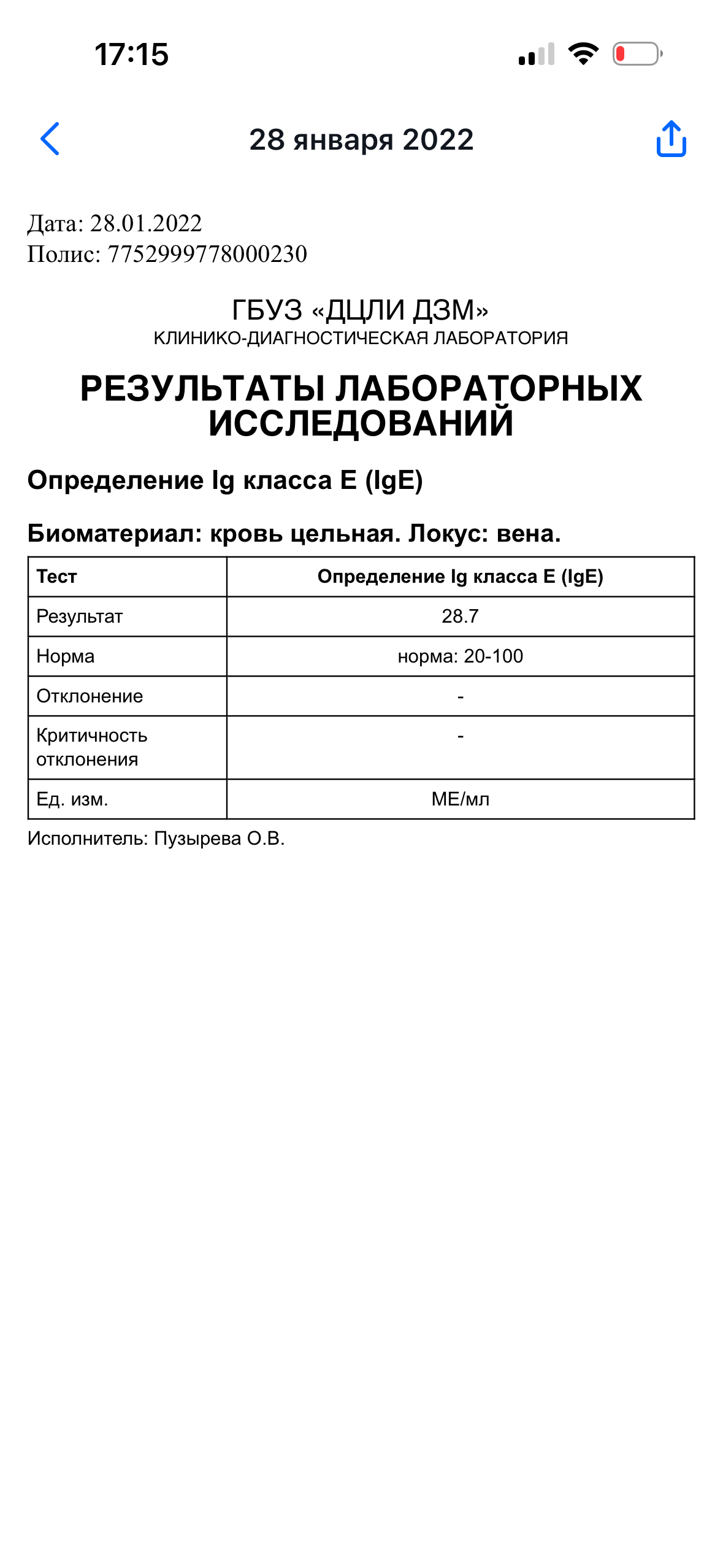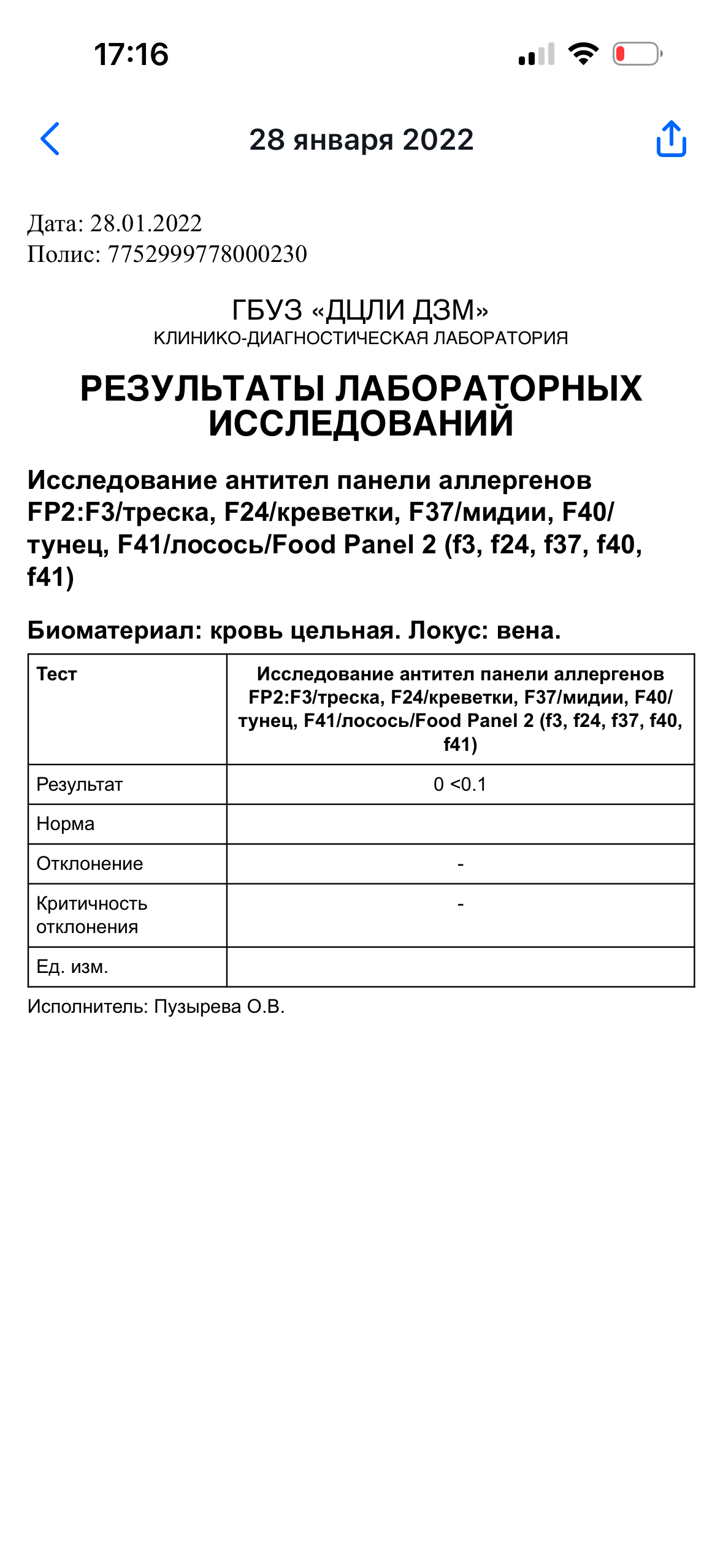 Анализ на аллерген Полины с детства проявлялась аллергия на рыбу (отёк гортани сильный)...