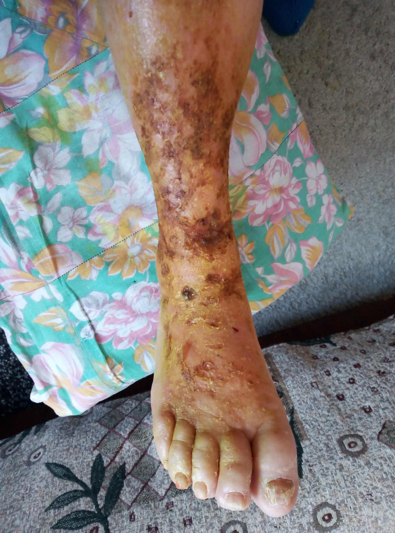 Здравствуйте, каждый год летом отекает нога, но с приходом зимы спадает. В этом году раздулась, и не спадает. Появились язвы, постоянно дергает, жжение, зуд. По назначению терапевта пропили антибиотики Амоксиклав, разжижающие, цефекон, мажут гелем солкосерил, фурацилин. Ничего не помогает. В больницу нет возможности доставить. Не может идти, нет сил и сразу повышается давление. Терапевт пояснил что это трофическая язва, она не лечится. Подскажите - может чтото можно сделать?