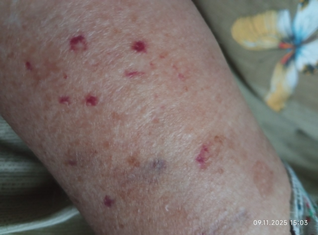 Здравствуйте, у меня системная склеродермия, генерализованная форма, стадия выраженных клинических проявлений. С кожей проблем море: гипепигментация, и отеки лица, кистей, предплечий, и сухость на голенях до состояния папиросной бумаги, и сосудистые "паучки", и синяки, и бурые пятнышки, и сотни ангиом на туловище. В последнее время просто за считанные минуты появляются красные точки, тут же увеличиваются и моментально могут кровить. Это что?