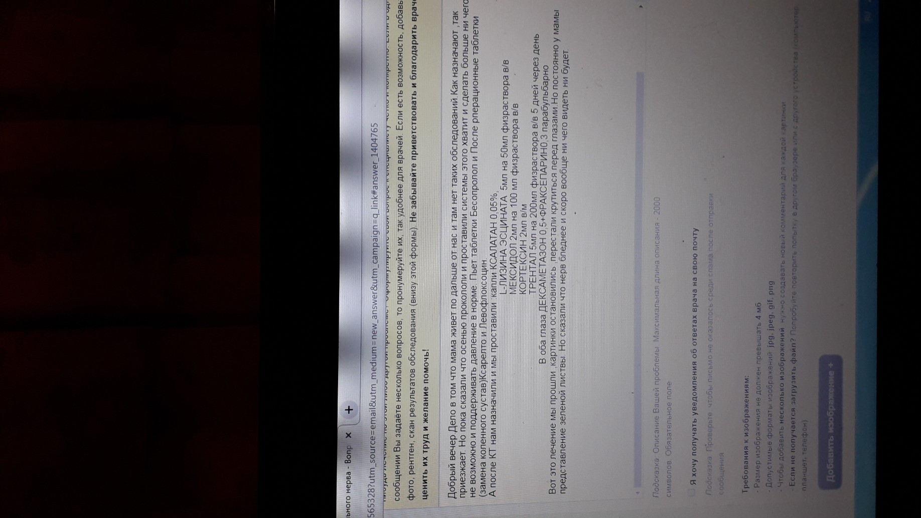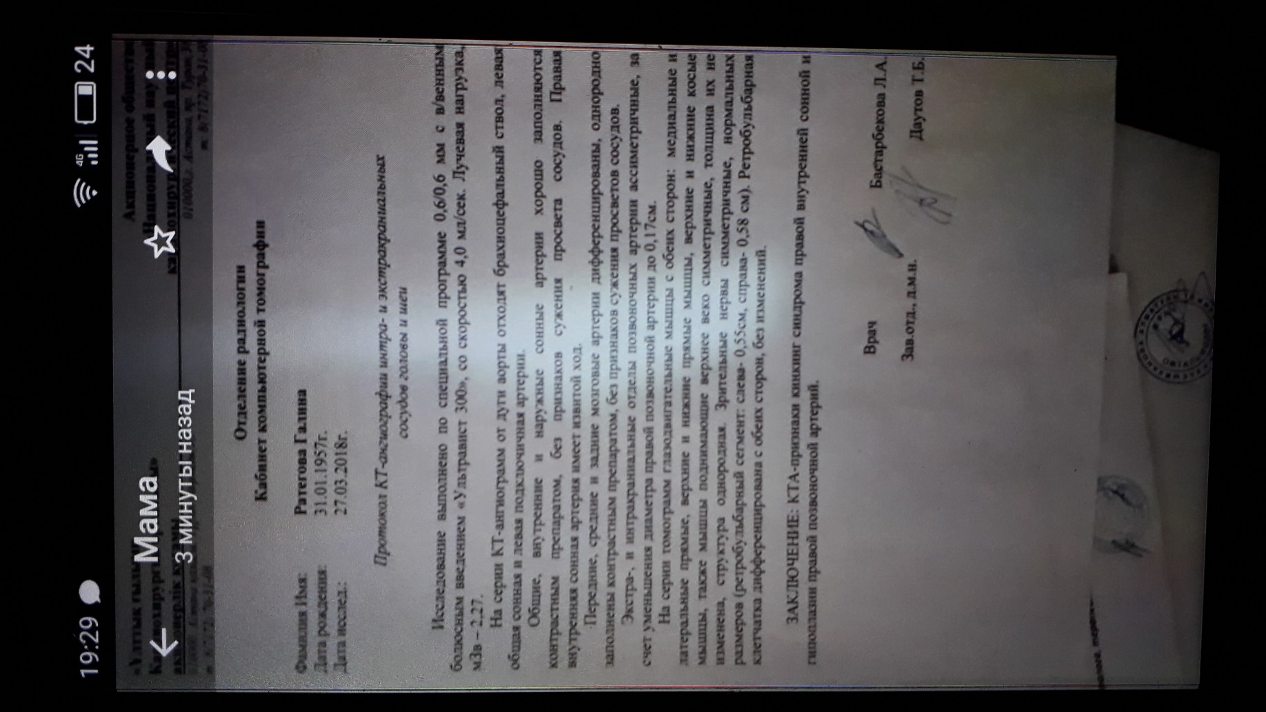 Здравствуйте, Анастасия Михайловна, это случилось в прошлом году. Мама сделали очередную опирацию по замене коленного сустава. Находясь в стационаре, вечером добилась спать видела все, еще и сканворд разгадывала, а проснулась ни чего не видет, только силуэты. Поехали в глазную клинику прошли все КТ и дно глаза (там цветные изображения обоих глаз и точечно на сколько сохранилось зрение) И поставили диагноз отек зрительного нерва. Нас стали гонять до невролога разных, дошли до центра нейрохирургии. А там требуют МРТ. И встали в тупик. В течении некотогрого времени принемали таблетки от жавления т. к жавление зашкалиыает за 200. Это прописал нам капдиолог. И сказал что может быть побочка на зрение из за множества операций в короткое время. Через пол года то есть по осени 2018 года я нашла еще одну клинику. Они нас сразу отправили к нейроофтальмологу. И говорят что потеряли пол года, зрение можно было восстановить. Проставили уколы в глазки Фраксепарин 10 дней. Улучшилось но совсем на самую малость. Вот так. КТ головного мозга мы делали только сосудов. Потому что нас уверяли нужно глянуть именно это. Одним словом у нас специалистов море а толку нет. Может вы что подскажите. Там очень много снимков. Может вам на почту скинуть и вы посмотрите?