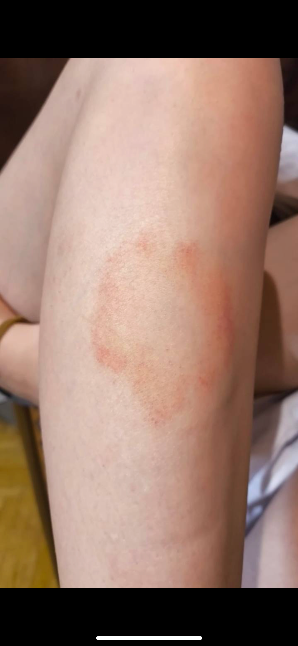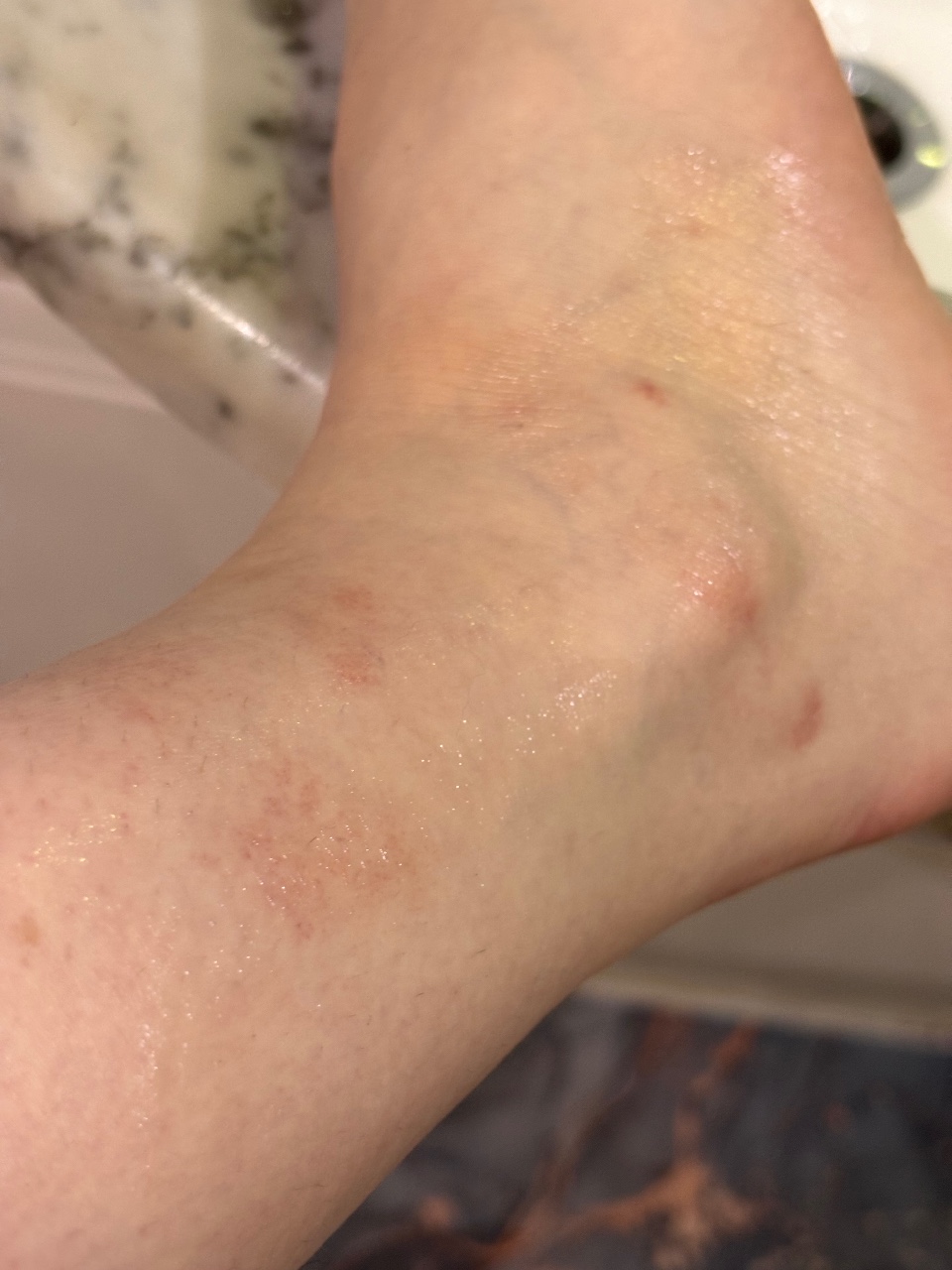 Здравствуйте, Здравствуйте, работаю сборщиком заказов. Работа постоянно на ногах. Поднимаю пятилитровые бутылки, таскаю тяжелые корзины с продуктами. Устроилась в январе того года, до лета все было хорошо, работала по 5ч, 3-4 раза в неделю. Летом же стала выходить чаще и брать смены по 8ч, появилось на ноге такое кольцевидное пятно(фото 1). После того, как я мазала каждый день акридермом - оно прошло. Осенью снова стала работать по 5ч, появились более мелкие пятна. Зуда нет.
