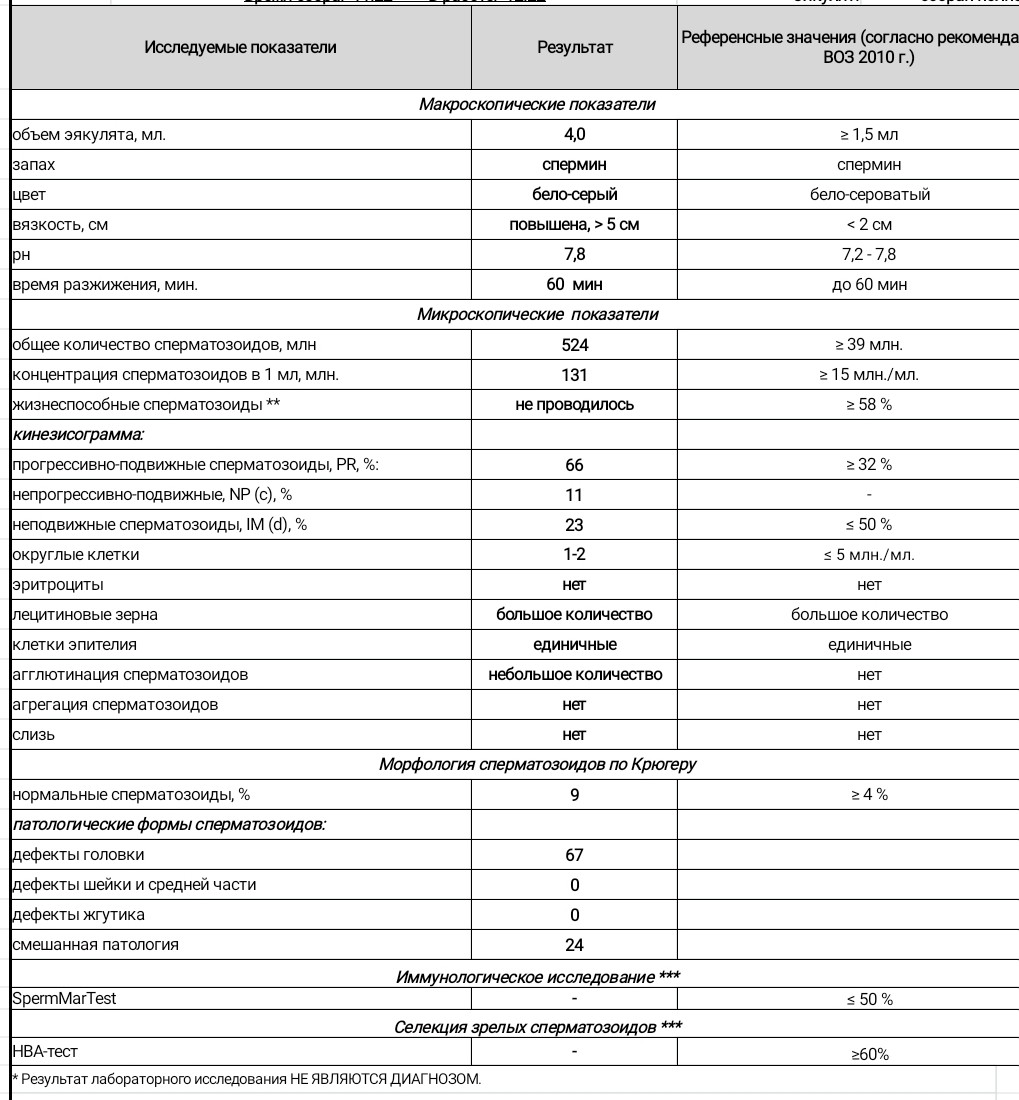 Расшифровка анализа спермограммы и планирование беременности Подскажите результаты...