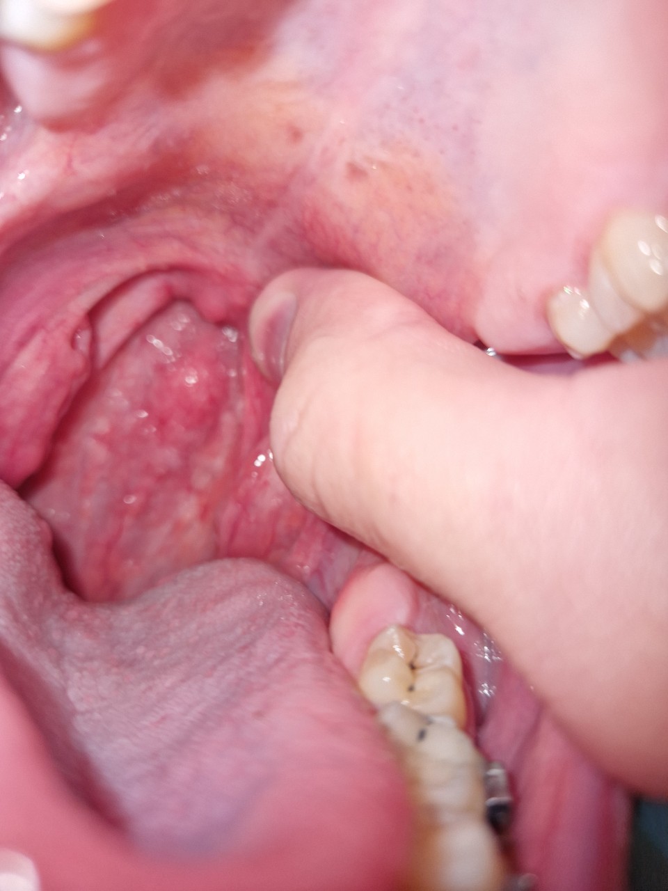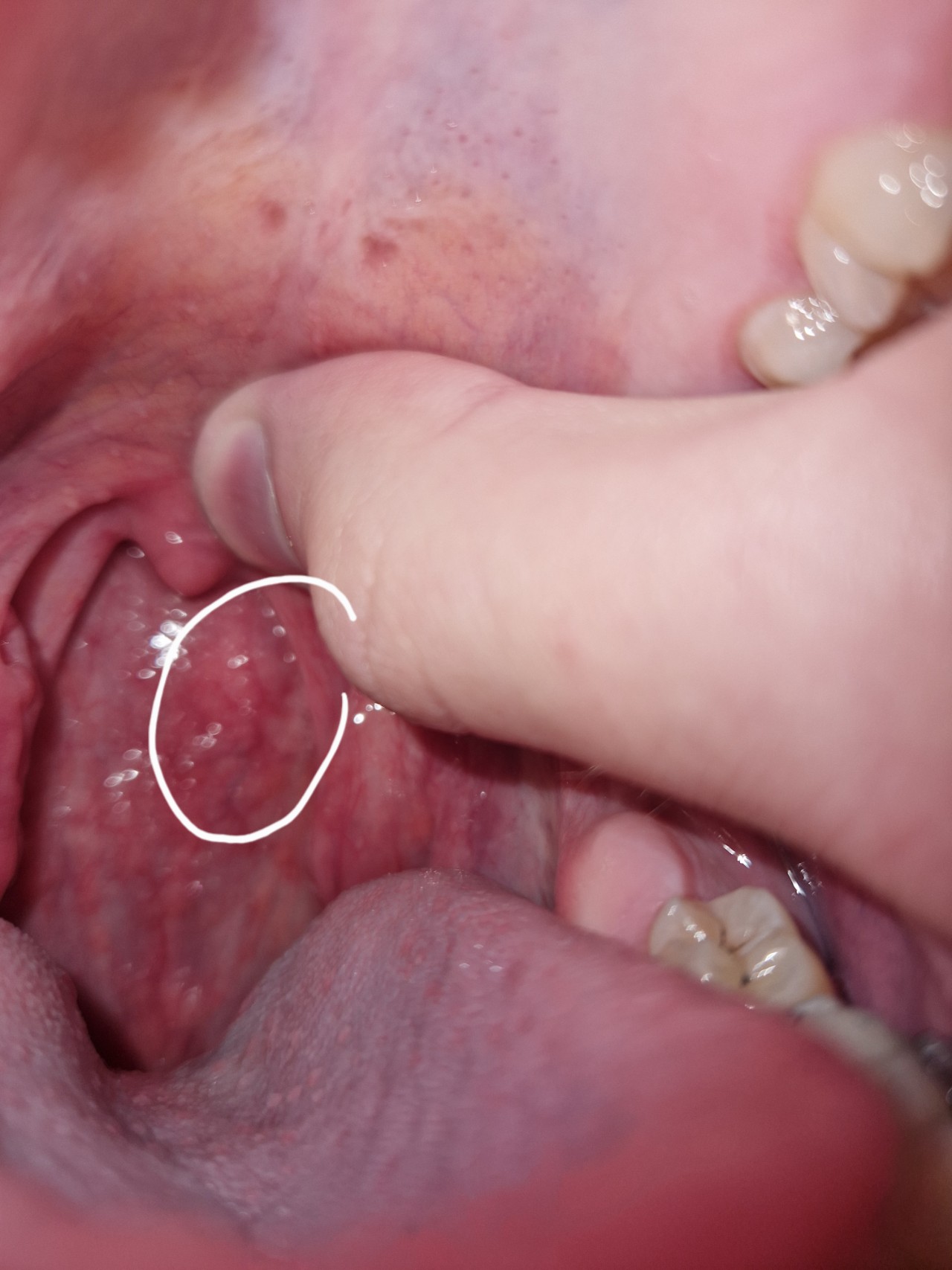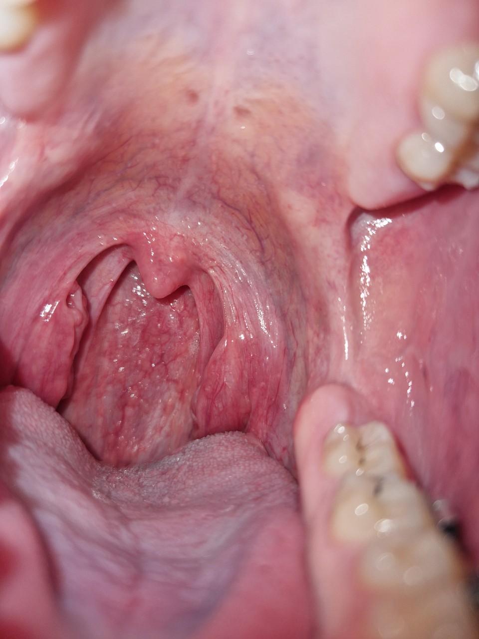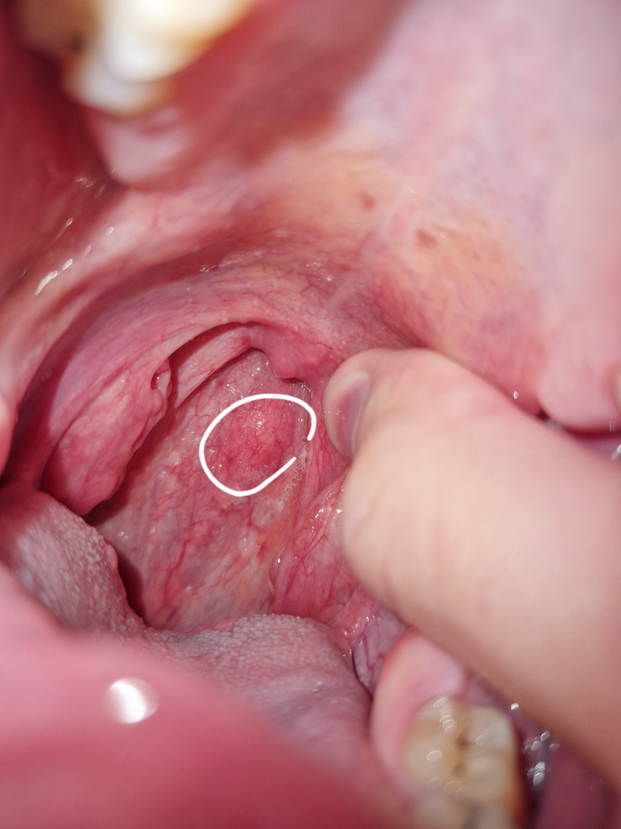 Здравствуйте, сегодня впервые заметил образование в области горла (визуально — на задней стенке глотки/вблизи небной дужки). На ощупь оно кажется плотным и неподвижным.