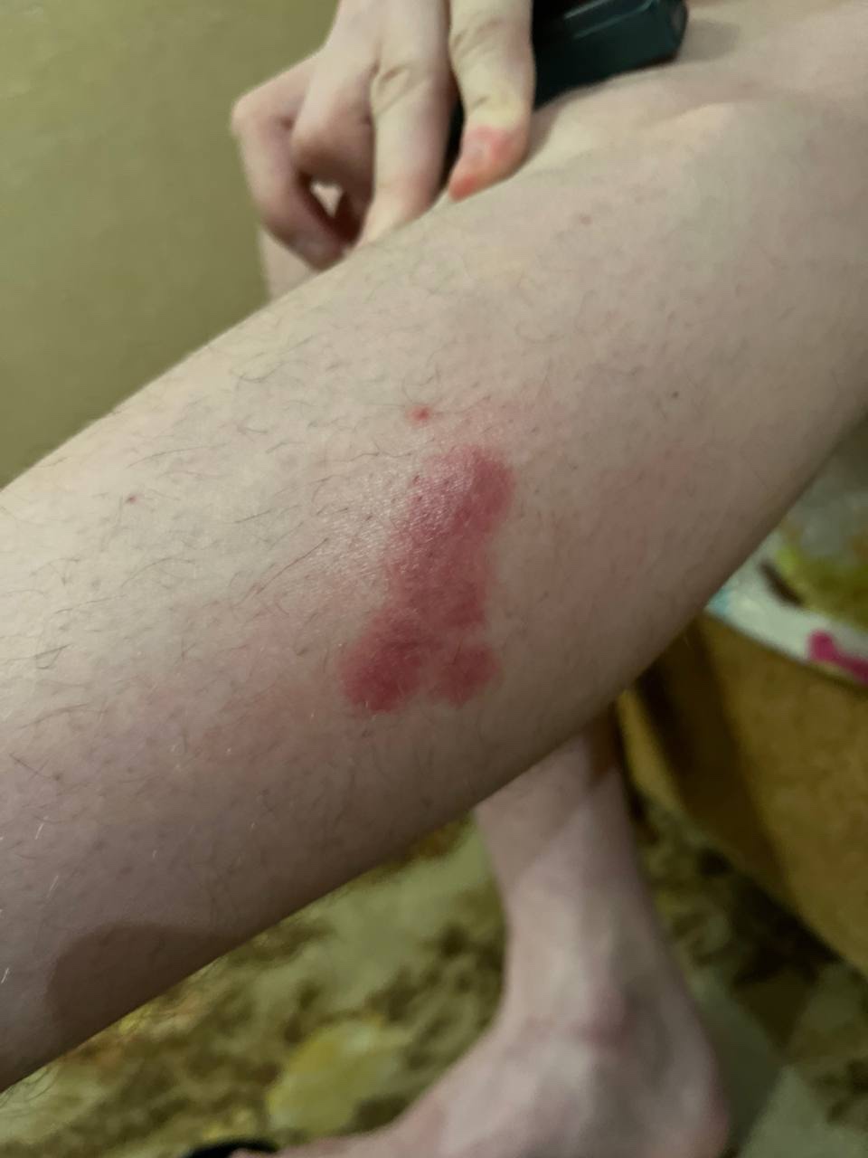 Ярко выраженные Красные Пятна на голени, зуд, Мой муж ездил на рыбалку, заходил в...