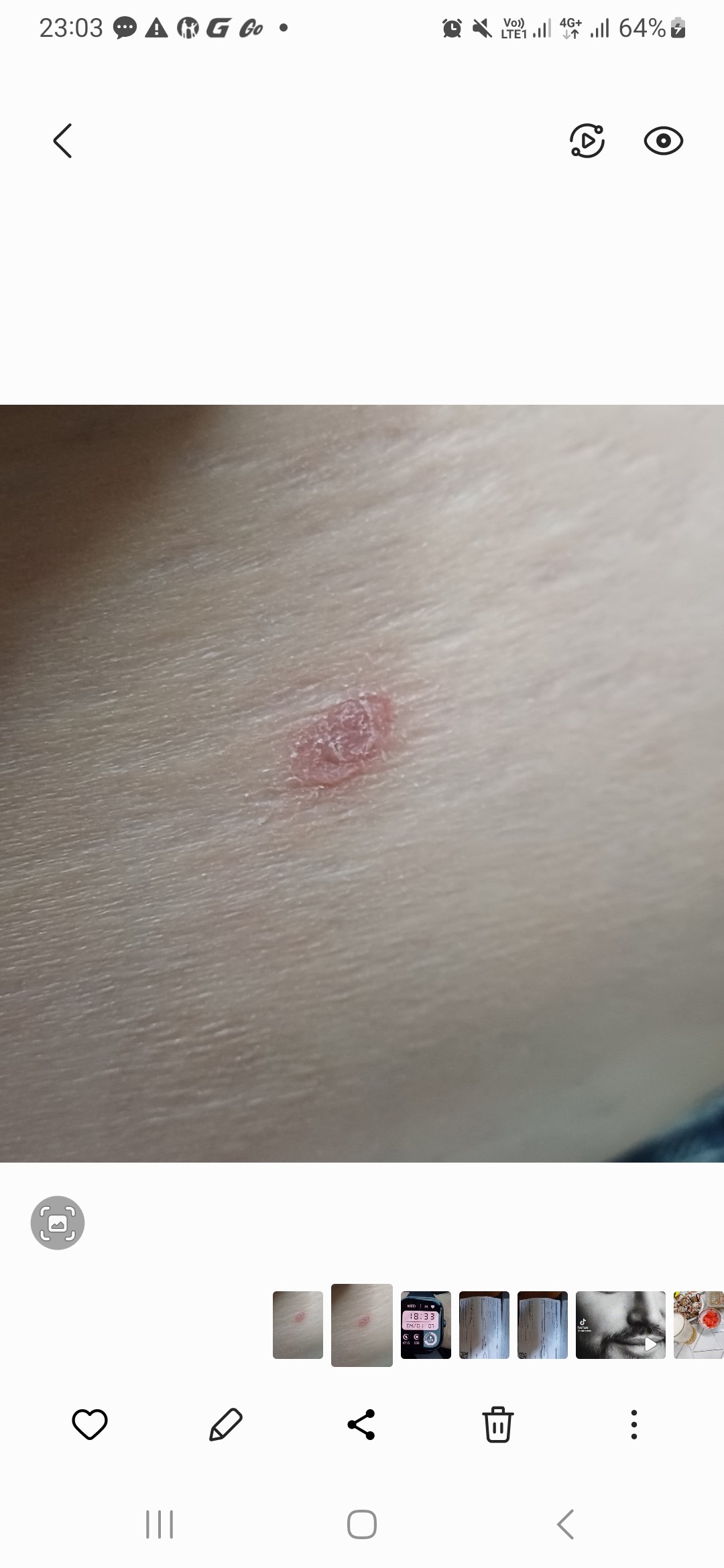 Пятно на коже руки шелушится не болит, не чешется Пятно видимо после укуса насекомого,...