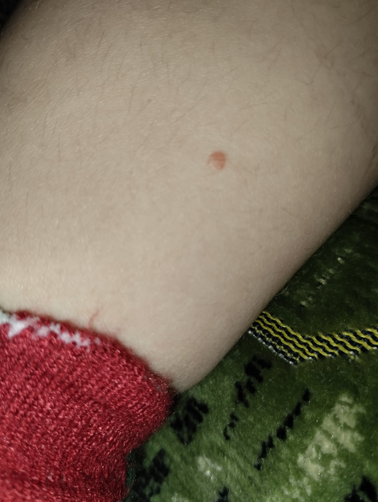 Здравствуйте, сегодня обнаружила у ребенка 3х лет на ножке непонятное пятнышко, вчера такого не было и даже днем я этого не видела. По размеру 2 мм цвет розовый и совсем немного выпуклое, что это может быть? Длительные выходные сойду с ума до приема врача, подскажите что это может быть, фото прикрепила