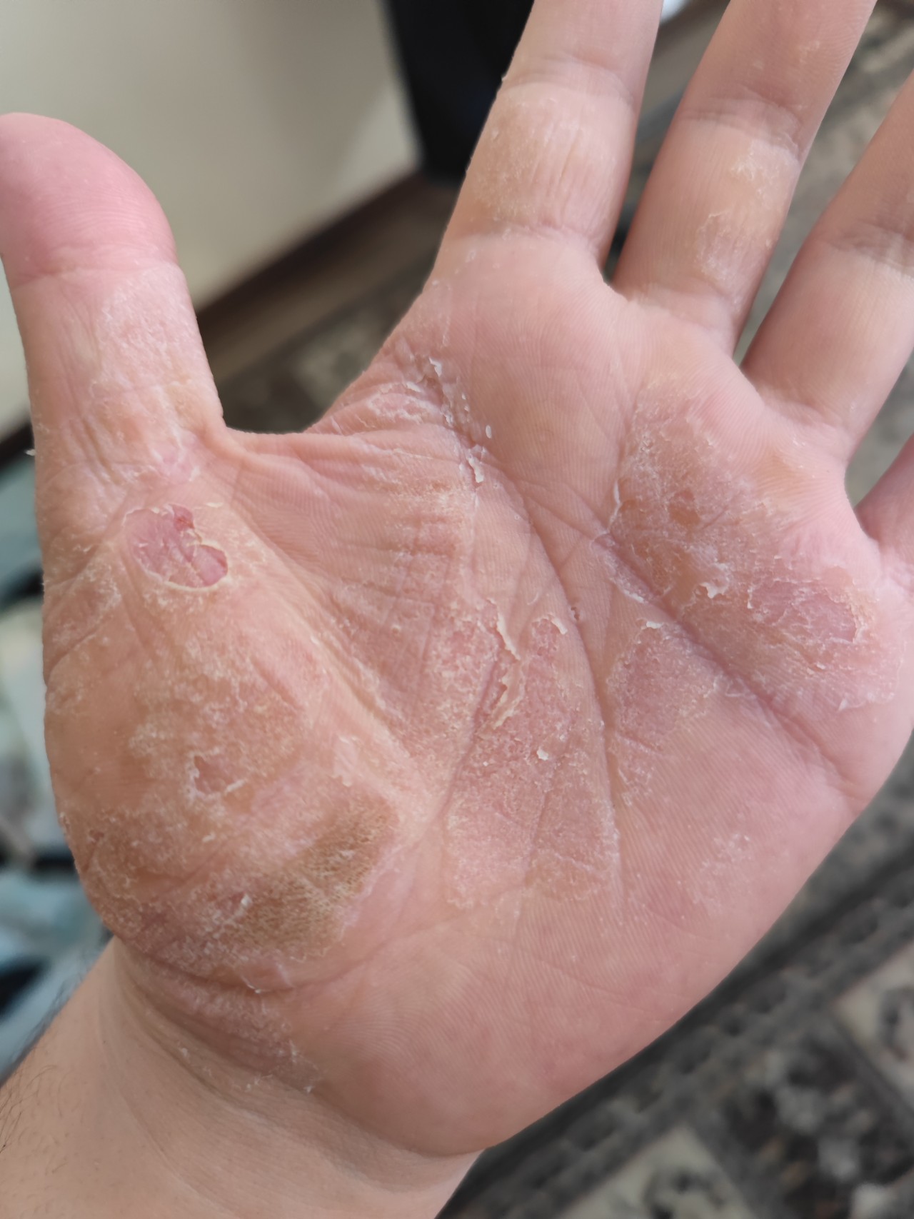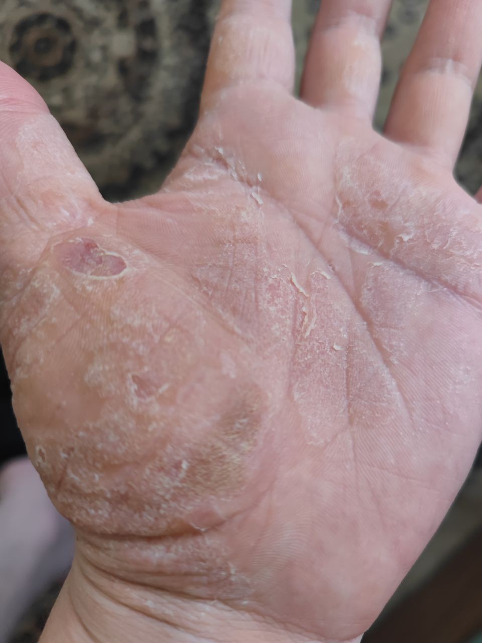 Шелушится кожа на ладонях Шелушится и облазит кожа на ладонях и между пальцами рук....