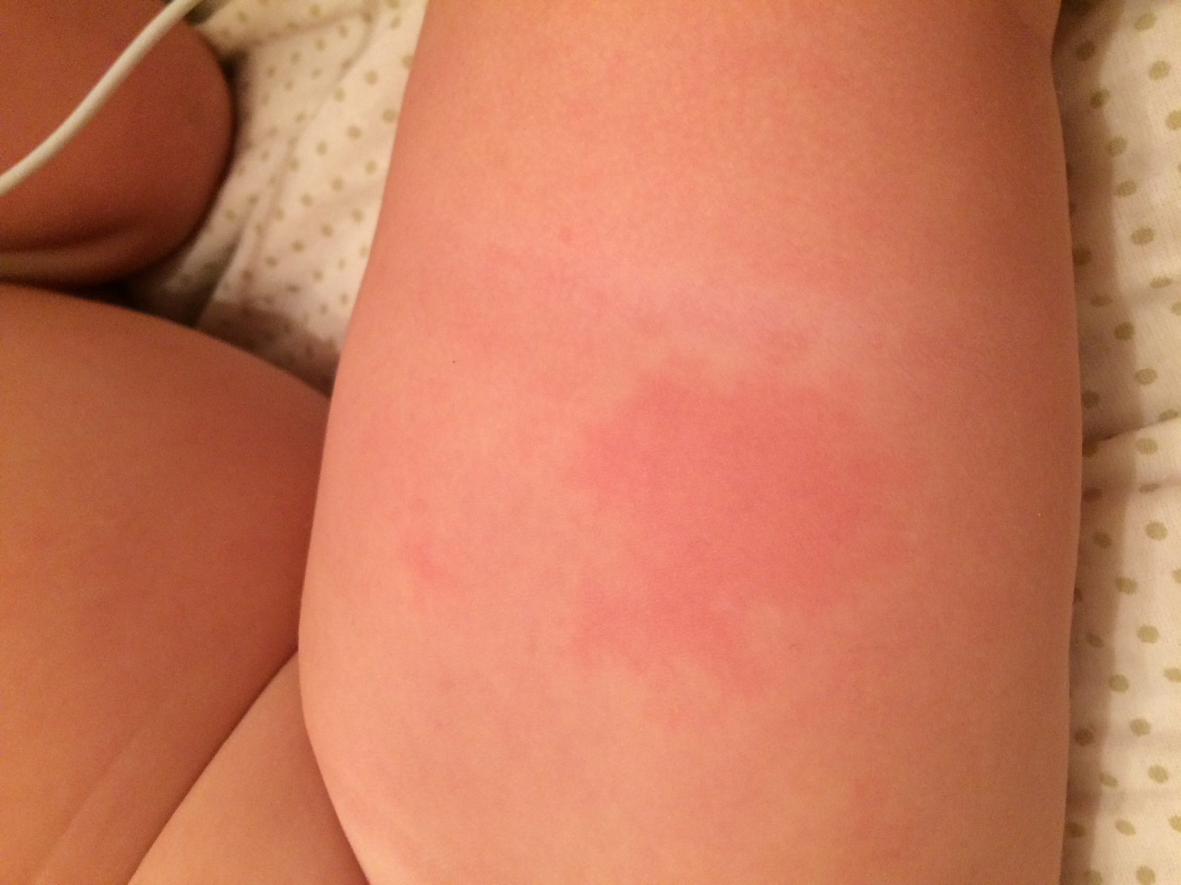 После ванны на одном и том же месте красное пятно , Здравствуйте, у ребёнка после...