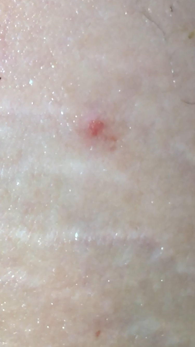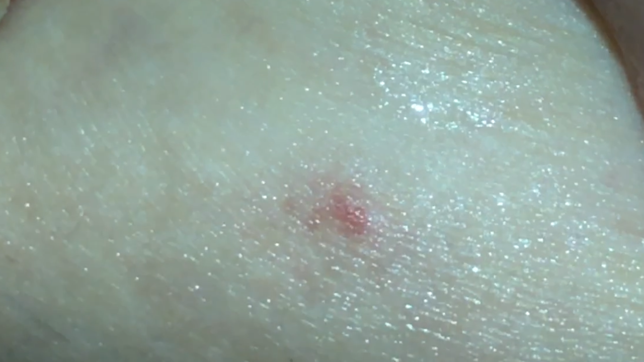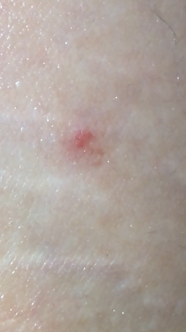 Месяц назад на внутренней стороне бедра появилось пятно красное, размер приблизительно 3мм, плоское, не выпуклое, чем я его только не мазала, но оно не проходит. Начиталась всего про меланому, теперь у меня страх, вдруг это без пигментная меланома? Посмотрите пожалуйста, очень переживаю!
