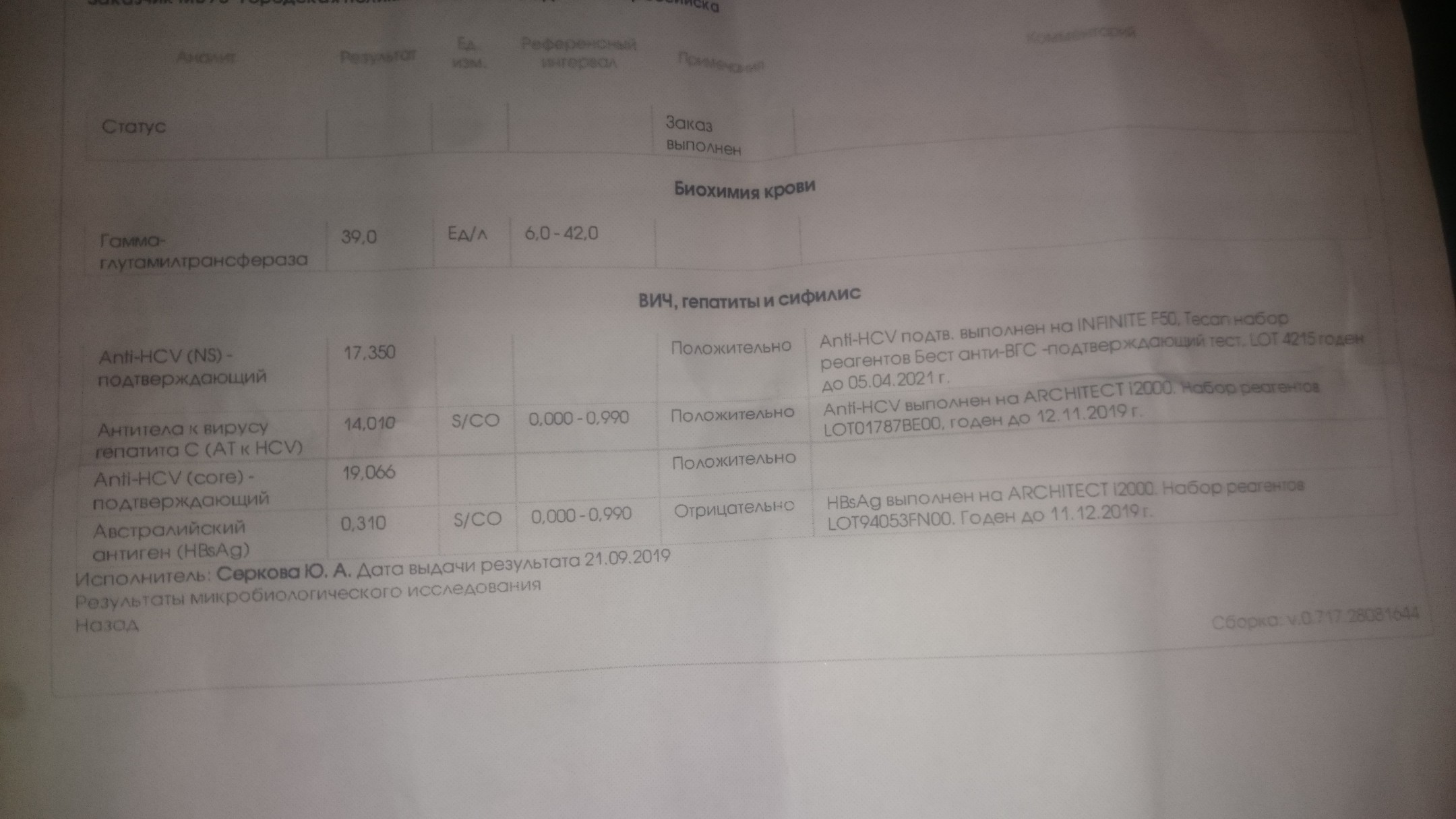 Гепатит, анализ Я инвалид детства 1 группы. Помогите пожалуйста разобраться с результатами...
