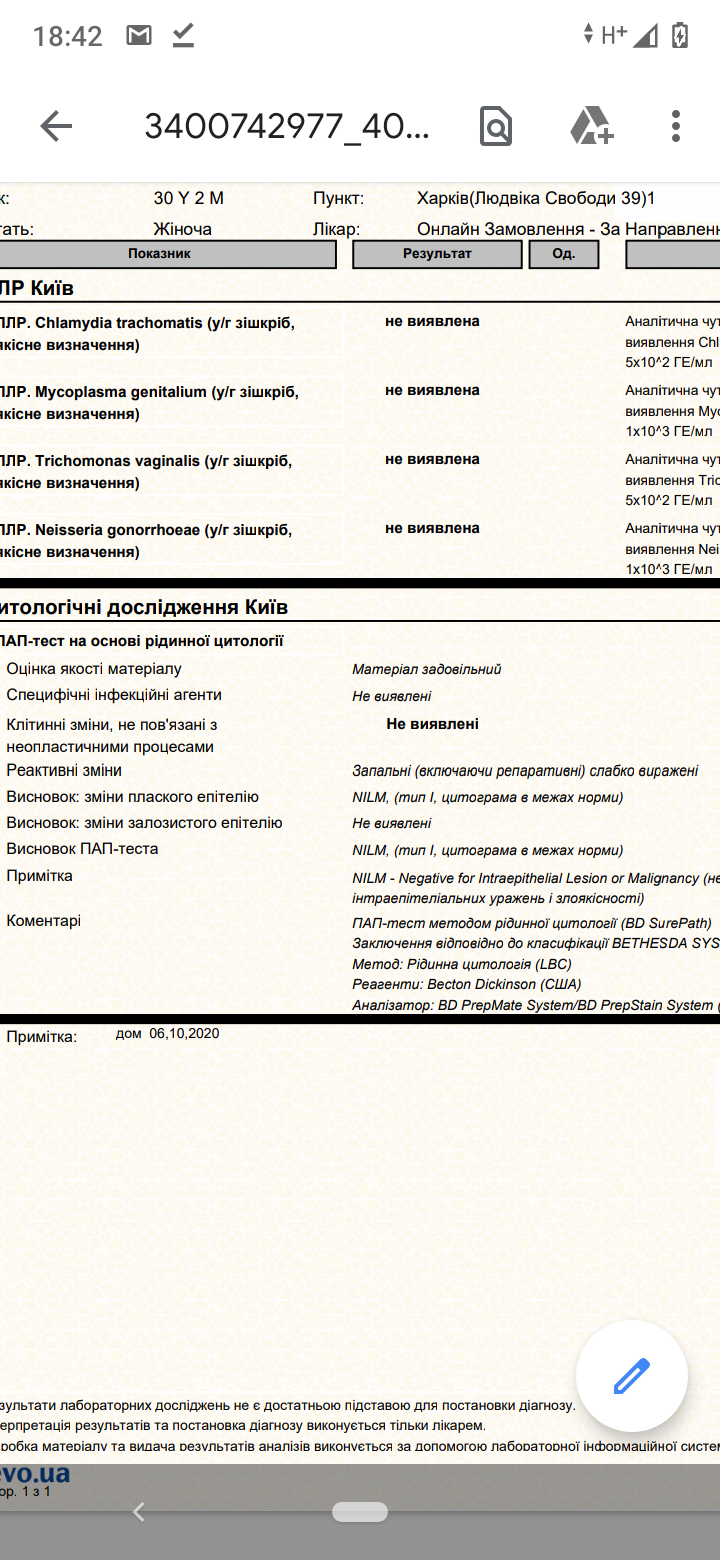 Пап-тест на основі рідинної цитології Помогите разобраться в анализах.