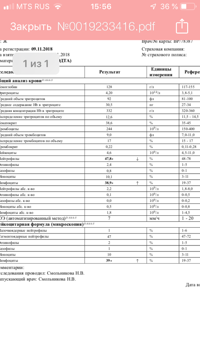 Расшифровка результатов анализа крови, есть ли патология Я сдавала клинический анализ...