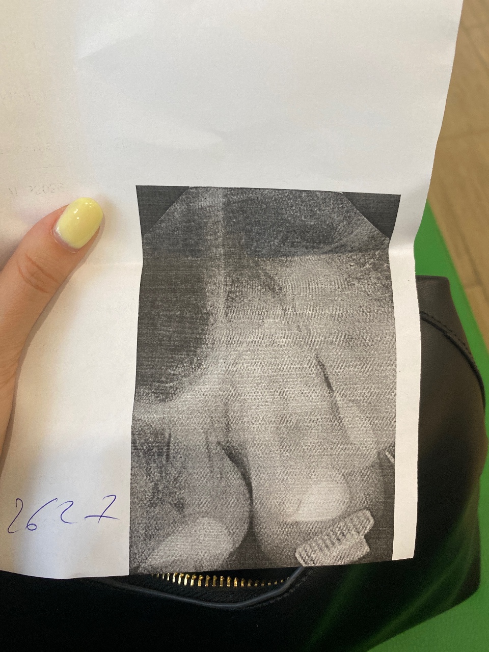Здравствуйте, вчера воспалилась десна и начал выходить оттуда гной, поехала к пародонтологу, она не смогла понять в чем дело, отправила меня на снимок и сказала, что дело скорее всего в зубе и направила к хирургу, к хирургу запись только послезавтра. Посмотрите, пожалуйста, снимок, подскажите, что за черные штрихи на рентгене? Ношу брекеты, очень боюсь, что скажут удалять зуб, зуб никак не беспокоит, не болит, десну полоскаю содо-солевым раствором и накладываю повязку с гелем, гноя больше нет и десна постепенно проходит.