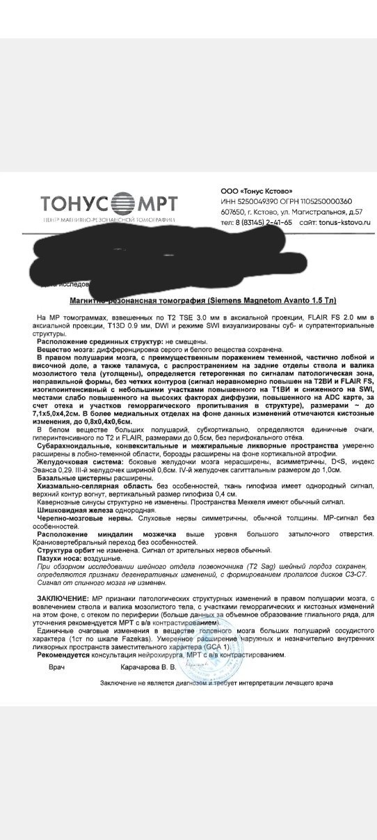 Интерпретация результатом МРТ по жалобам Беспокоит тяжесть в голове, как вакуум. Быстрая...
