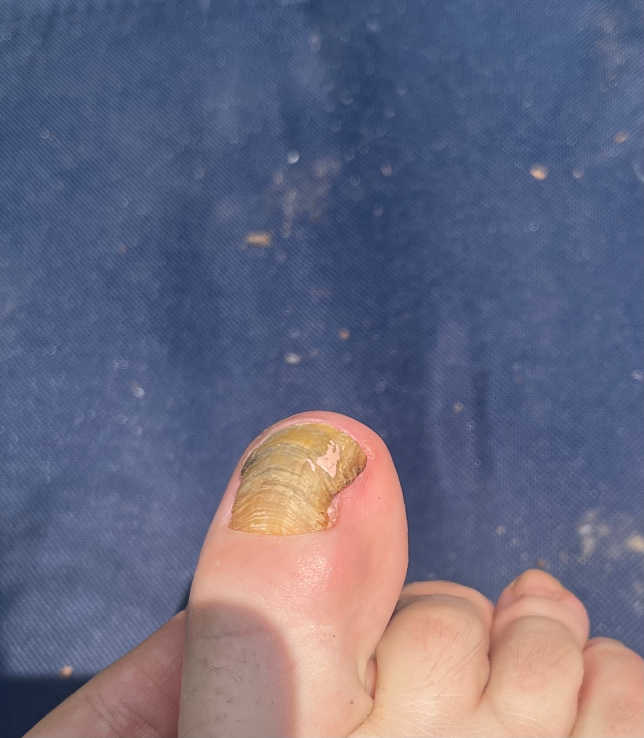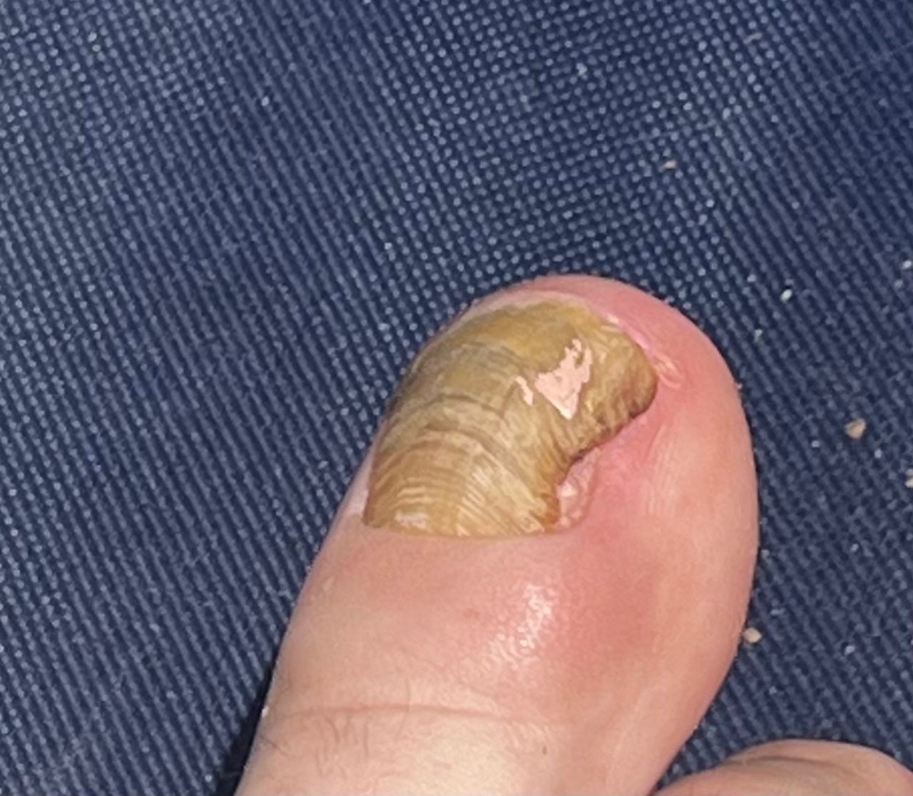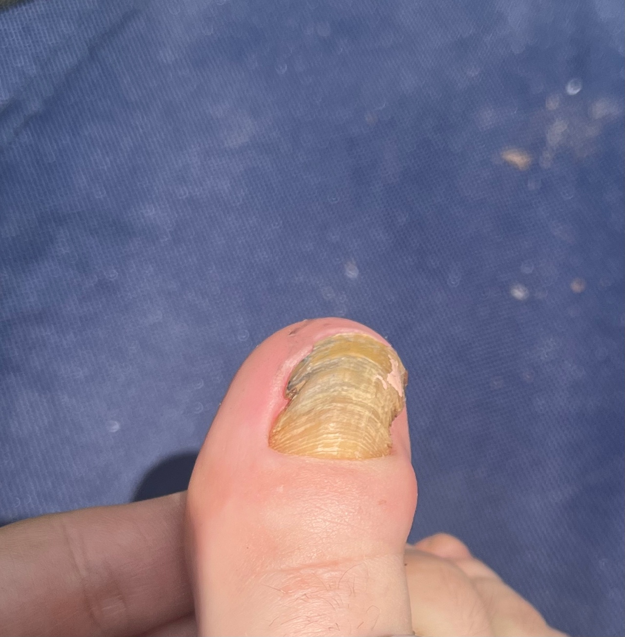 Желтый ноготь на ноге довольно давно Подскажите пожалуйста что у меня с ногтем. Брали...